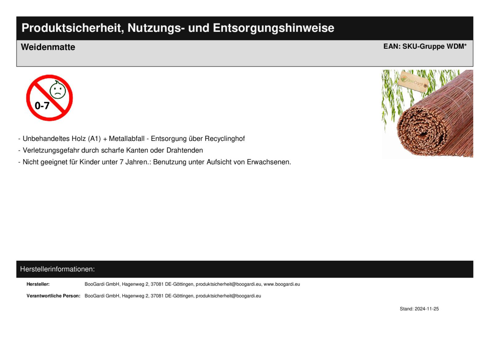 Die Eigenschaften unserer Weidenmatte: