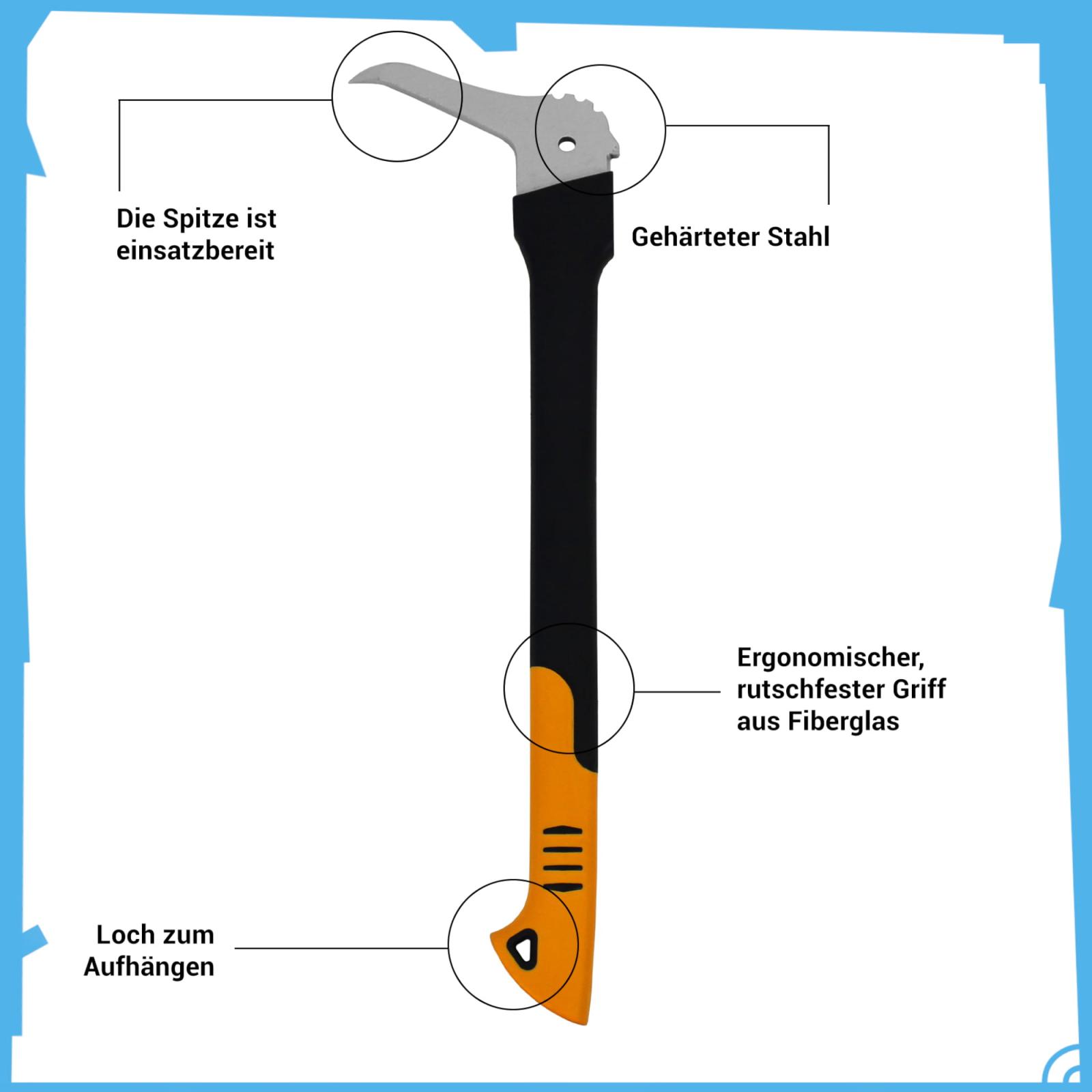 - 450g Stahlkopf – Der gehärtete Stahlkopf dringt sicher ins Holz ein und erleichtert das Greifen und Bewegen von Holzstücken.