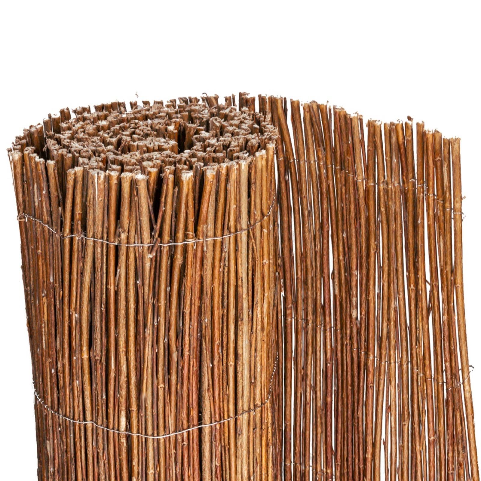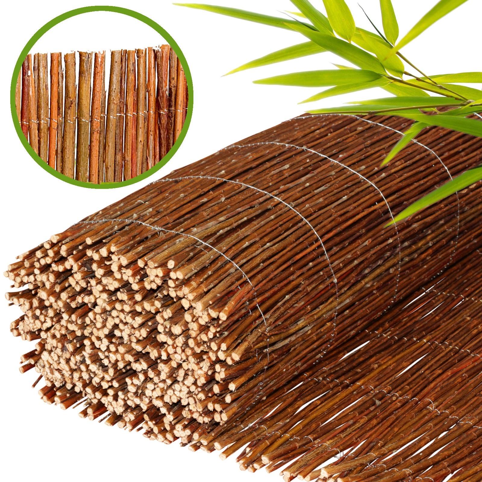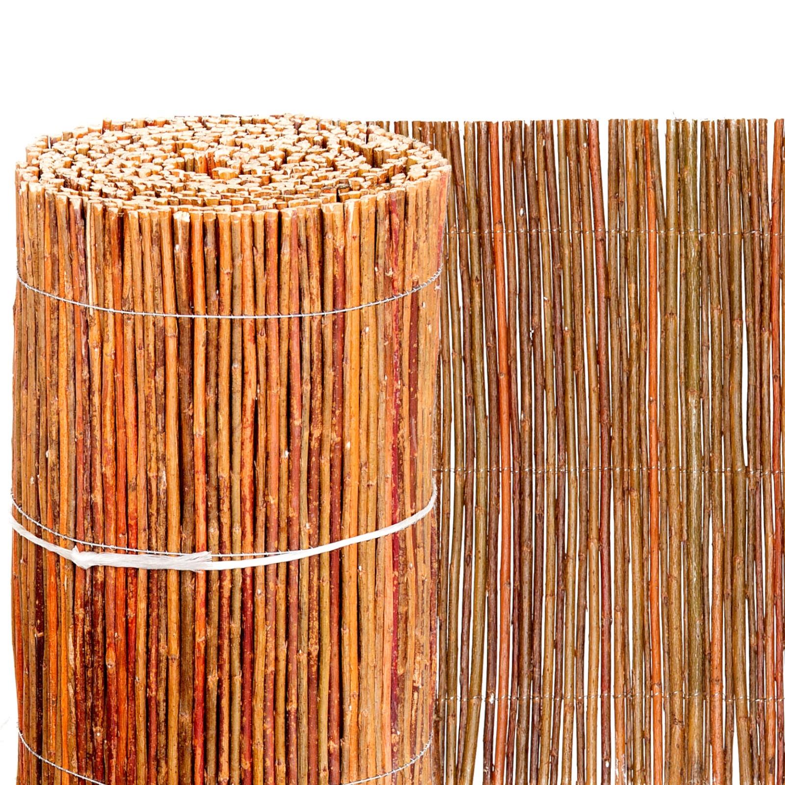 Diese natürliche Weidenmatte eignet sich perfekt für Wegabgrenzungen oder als Sichtschutz. Das hier angebotene Naturprodukt aus Weide erlaubt es ihnen durch seinen Drahtüberstand (am Rand) mehrere Weidenmatten zu verbinden um auch lange Wände, Zäune oder Geländer vielflächig abdecken zu können.