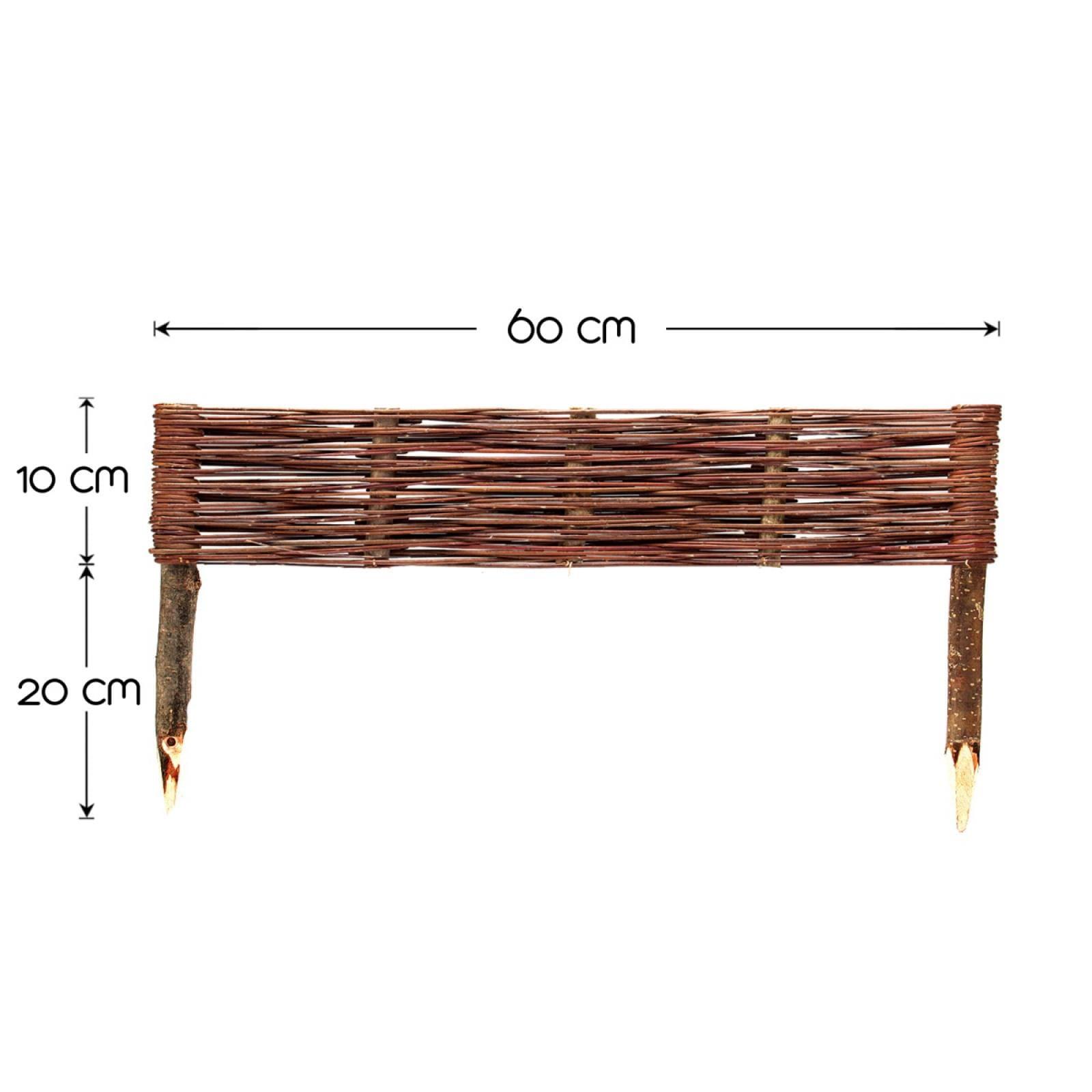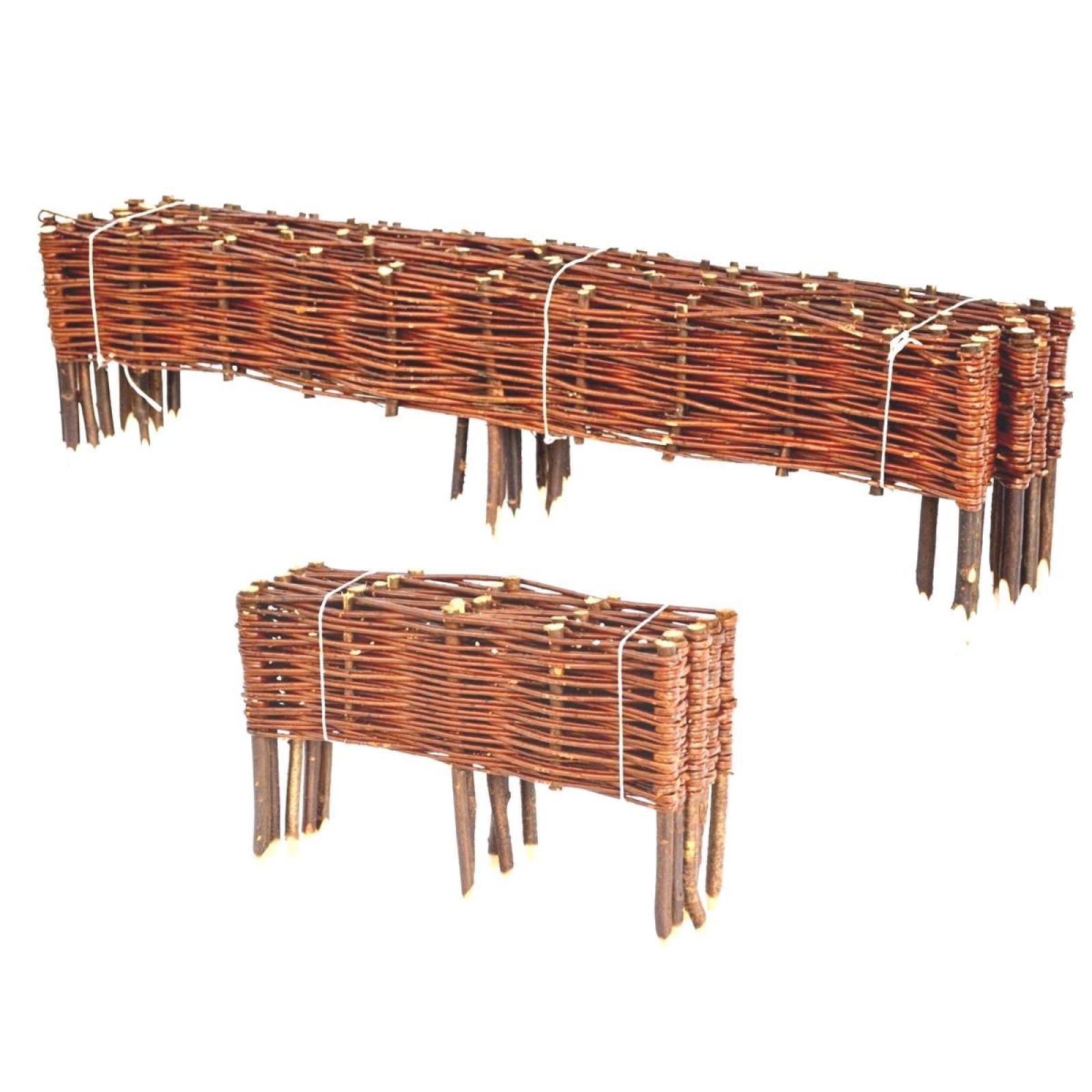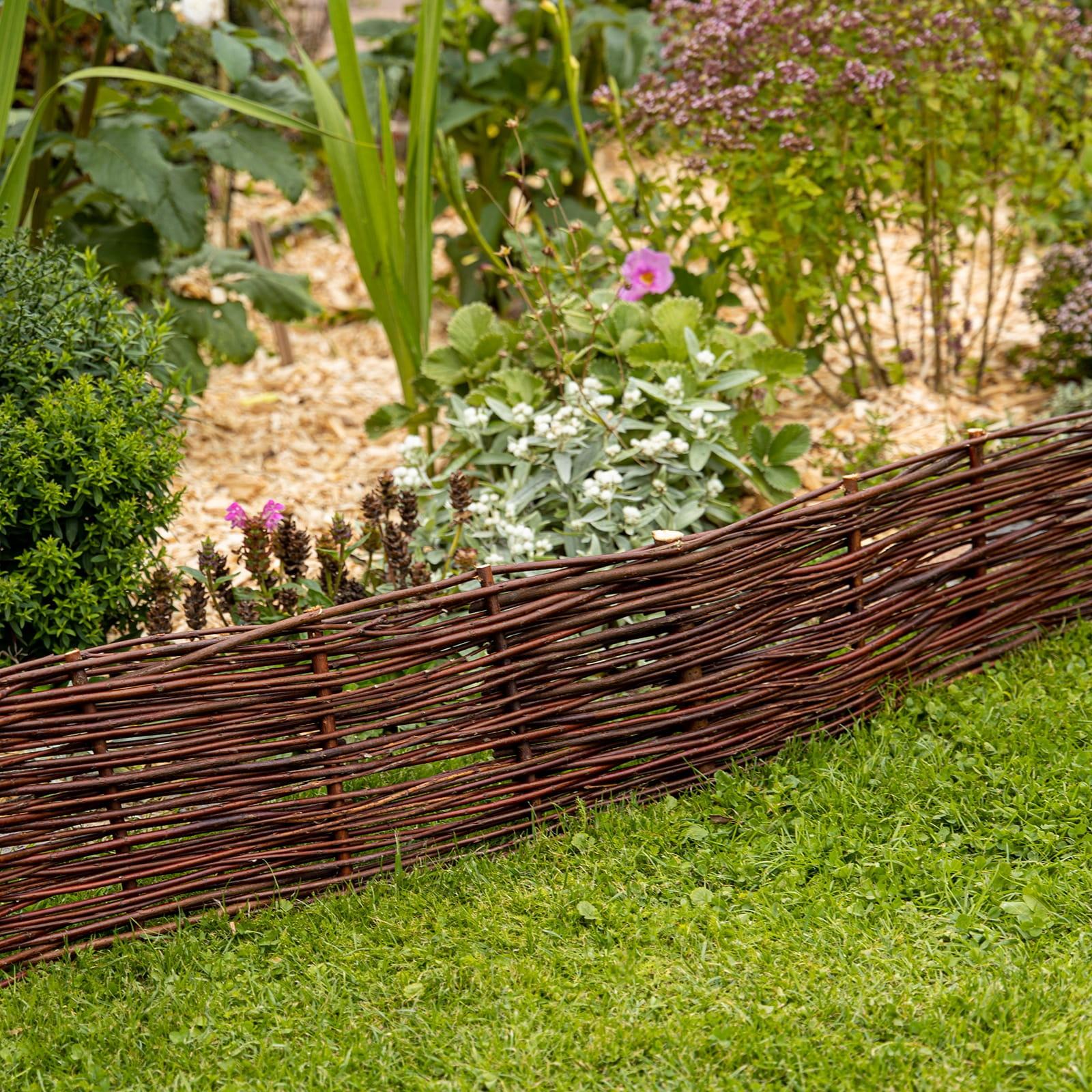 Beeteinfassungen werden dazu genutzt, in einem Blumen-, Gemüse- oder Kräutergarten einzelne Beete getrennt voneinander abzustecken, sodass eine bessere Überschaubarkeit der Gartenanlage gewährleistet wird. Gleichzeitig dient eine Beeteinfassung auch als optische Abgrenzung zum restlichen Gartenareal und verdeutlicht, wo der Nutzgarten beginnt. Beeteinfassungen sind eine äußerst charmante und funktionale Bereicherung für jeden Garten und werden deshalb auch gerne zu dekorativen Zwecken genutzt. Die hier angebotene Beeteinfassung besteht zu 100 % aus Weidenholz, das durch seinen satten Braunton und seine dichte Flechtung besticht.