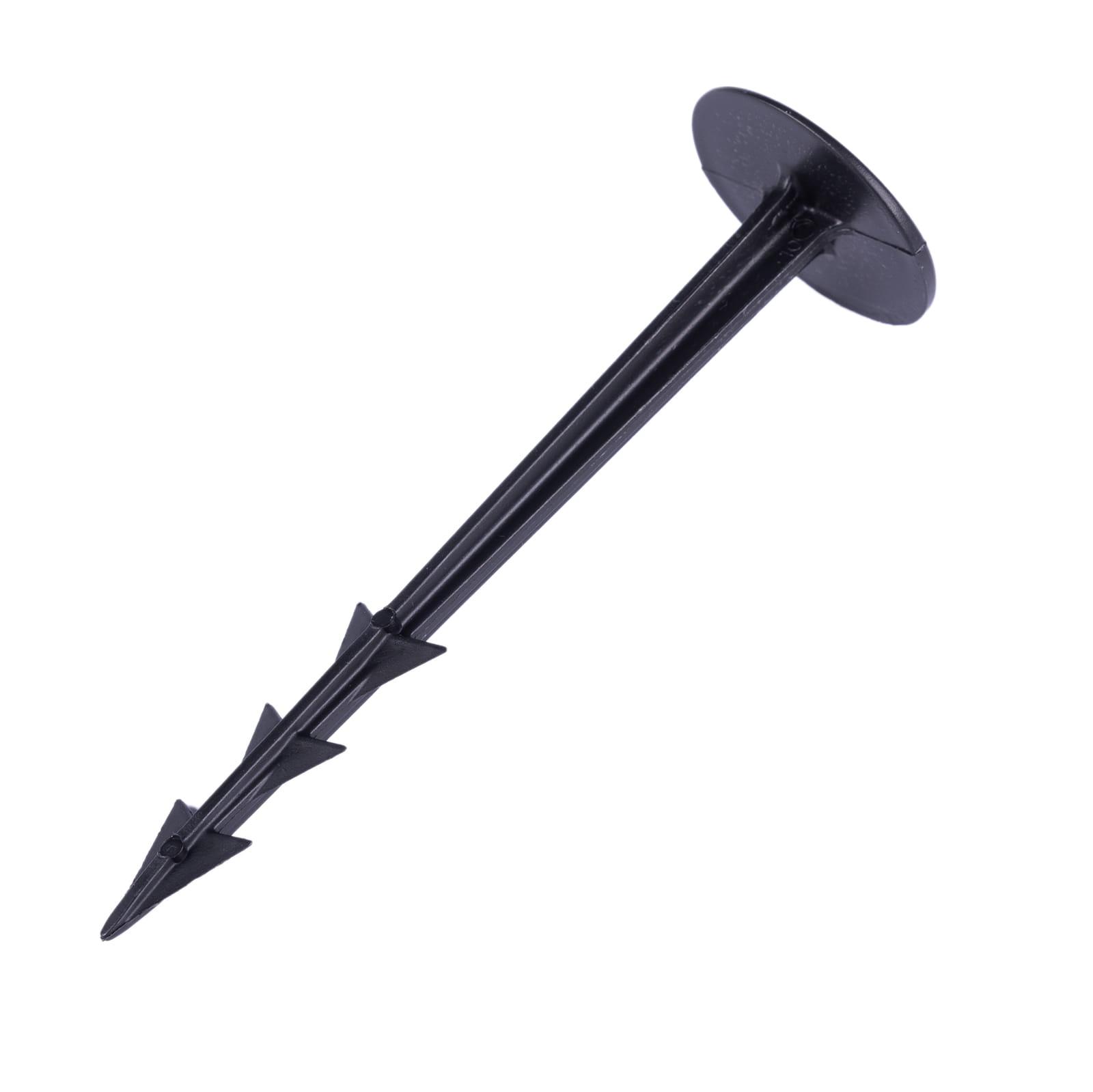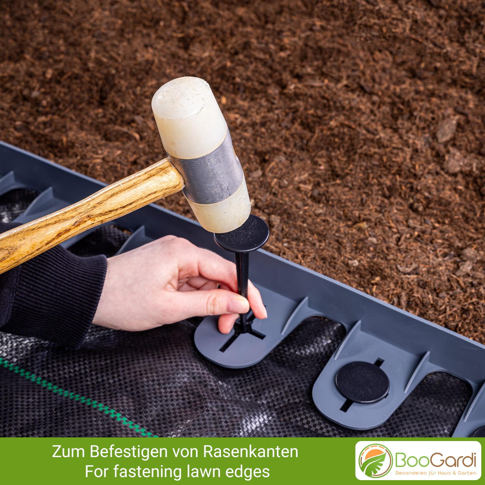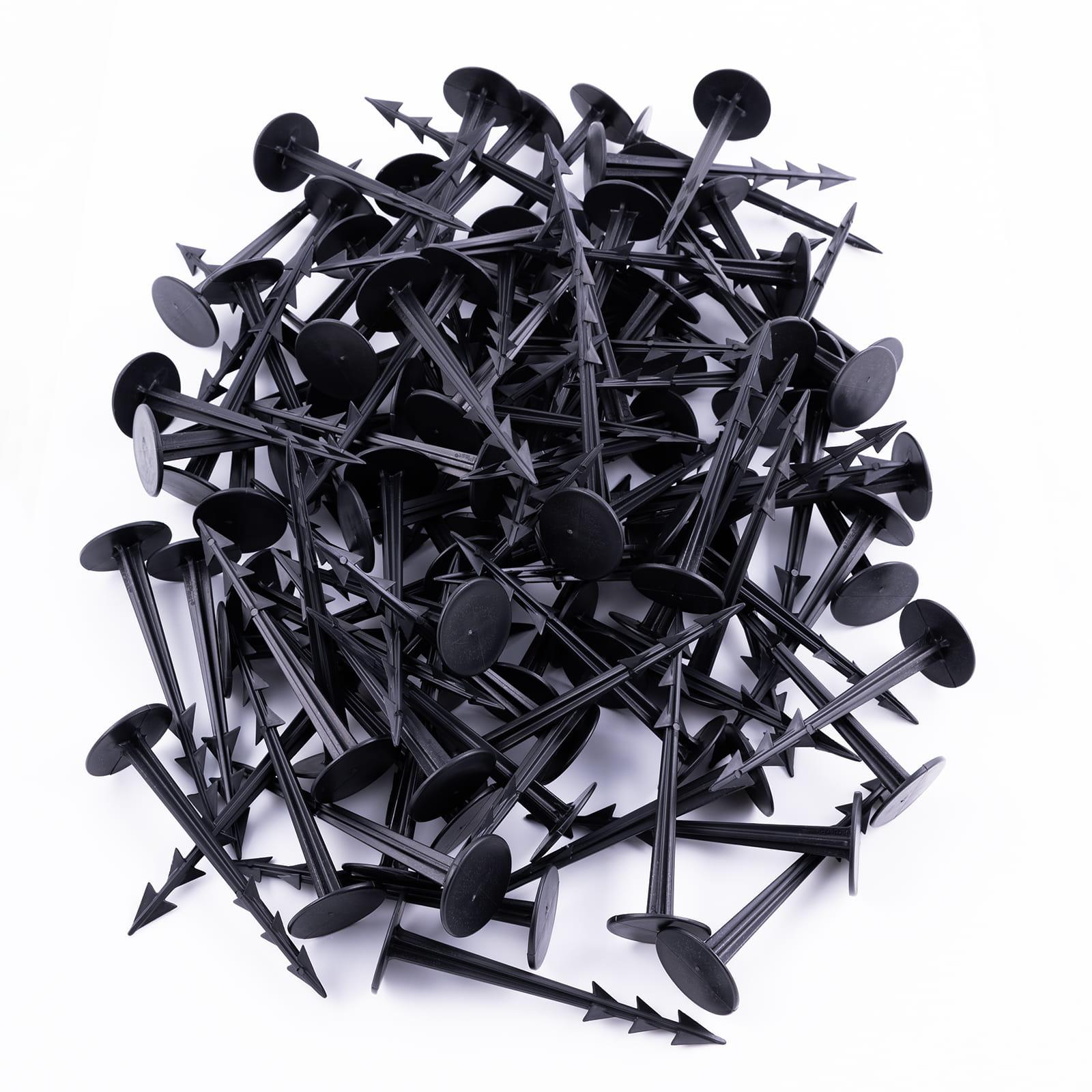 - 2 Größen zu je 100 Stück erhältlich: 100 mm mit Kopf-Ø 25 mm / 125 mm mit Kopf-Ø 38 mm // widerhakenartigen Spitzen und stabilen Rippen bieten eine feste Verankerung im Boden.