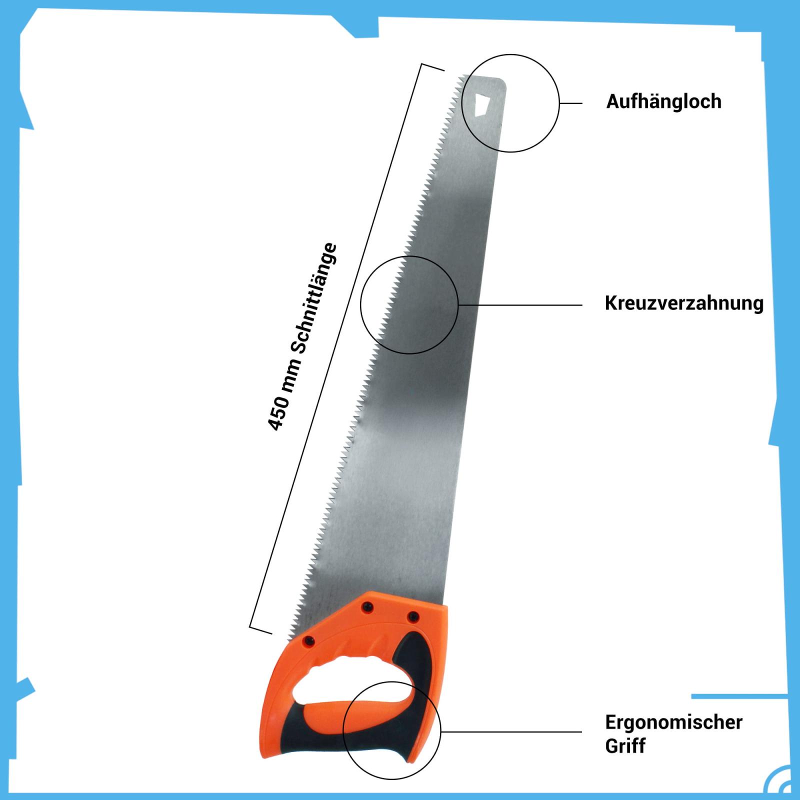 - 450mm lange Säge mit hochwertiger Kreuzverzahnung für schnelle, präzise Schnitte.