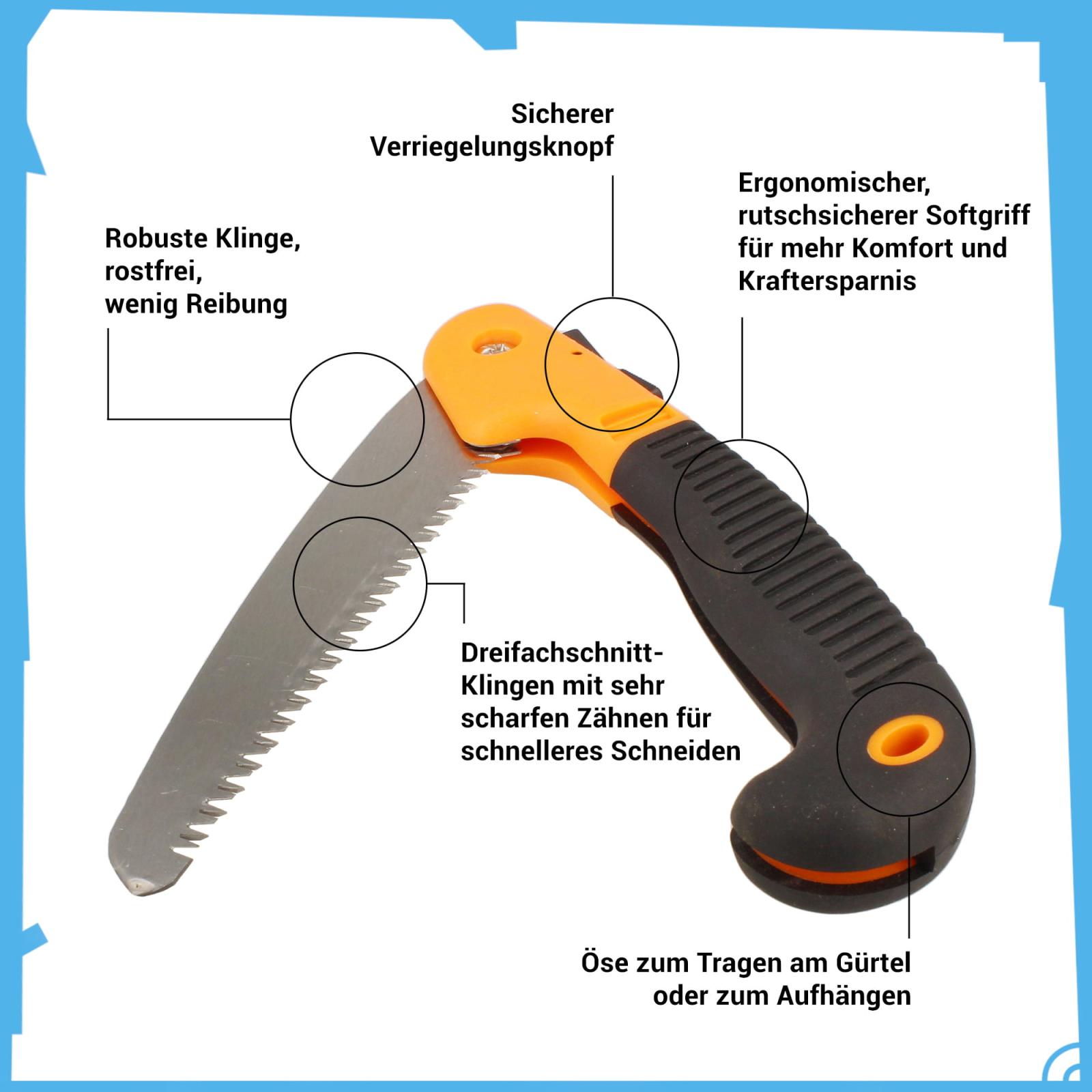 - Vielseitig einsetzbar: Perfekt als Garten-, Camping- oder Survival-Säge für unterschiedlichste Aufgaben.