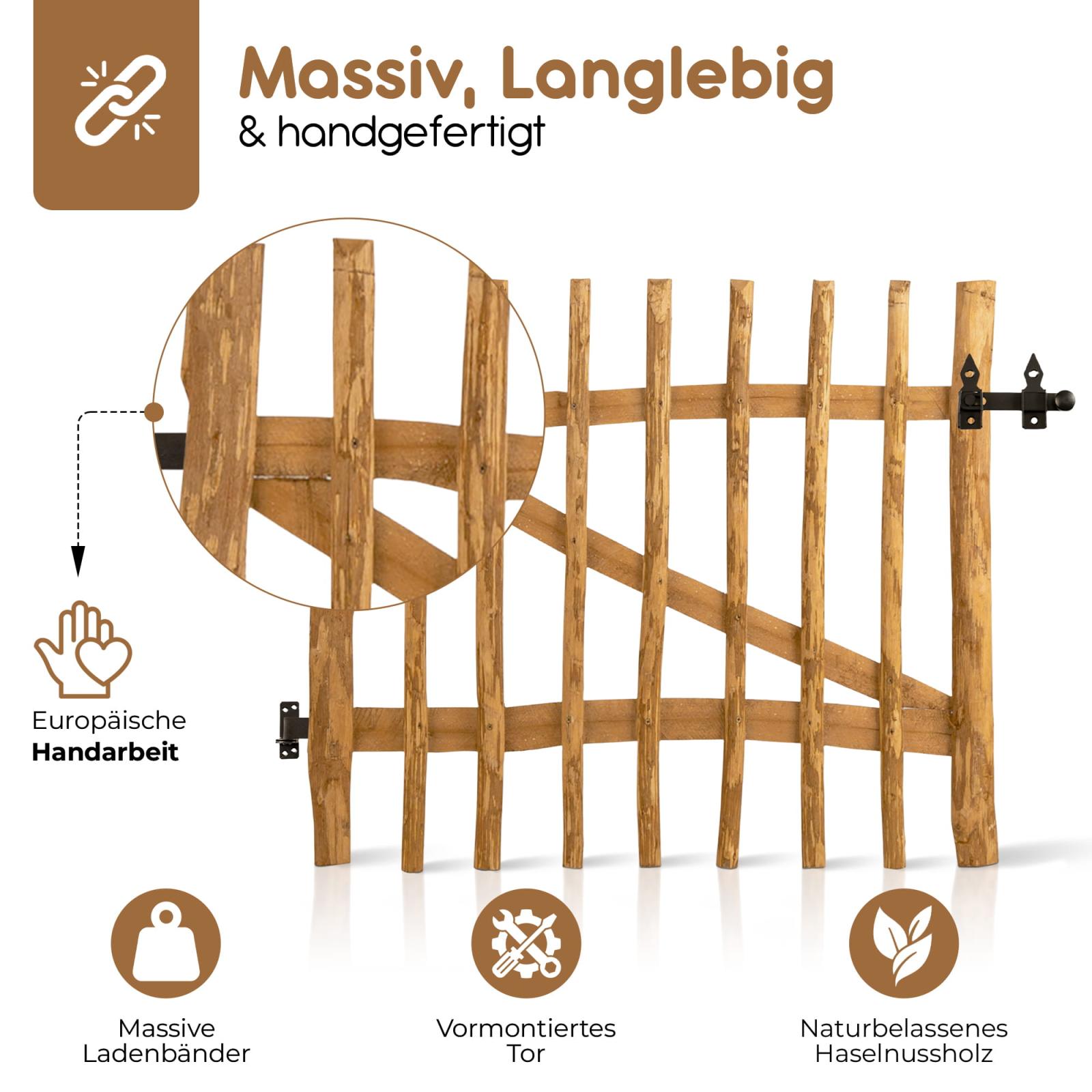 • Hochwertiges Zauntor aus Haselnuss-Vollholz