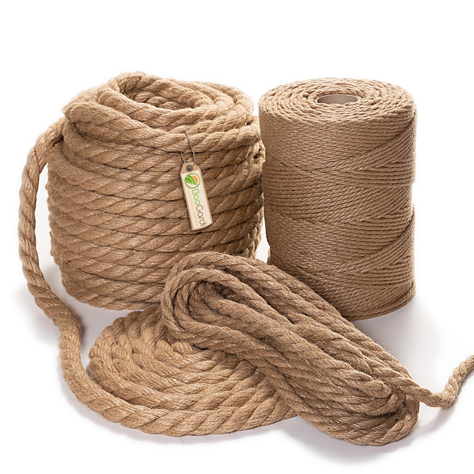 Unser eingedrehtes Naturseil ist ein echter Alleskönner und lässt Ihnen viel Spielraum im Bereich Basteln, Gestalten und Dekorieren im und am Haus. Es kann im Garten für Seilzäune, zum Aufhängen von Gegenständen wie Blumenampeln oder Kränzen und zum Bau von Rankgittern verwendet werden. Desweitern können Sie die Jutestricke zum Umwickeln von Gläsern und Lampen für die Makramee Technik nutzen. Eine DIY Tischdeko für eine Vintage Hochzeit ist auch spielendleicht umsetzbar und kann Ihre Gäste begeistern. Natürlich passt jedes Tau auch immer zu maritimen Ideen rund um Badezimmer und Sommerdekorationen. Setzen Sie jetzt Ihre kreativen Dekoideen um und gestalten Sie Ihr Heim nach Ihren Wünschen und Vorstellungen neu.