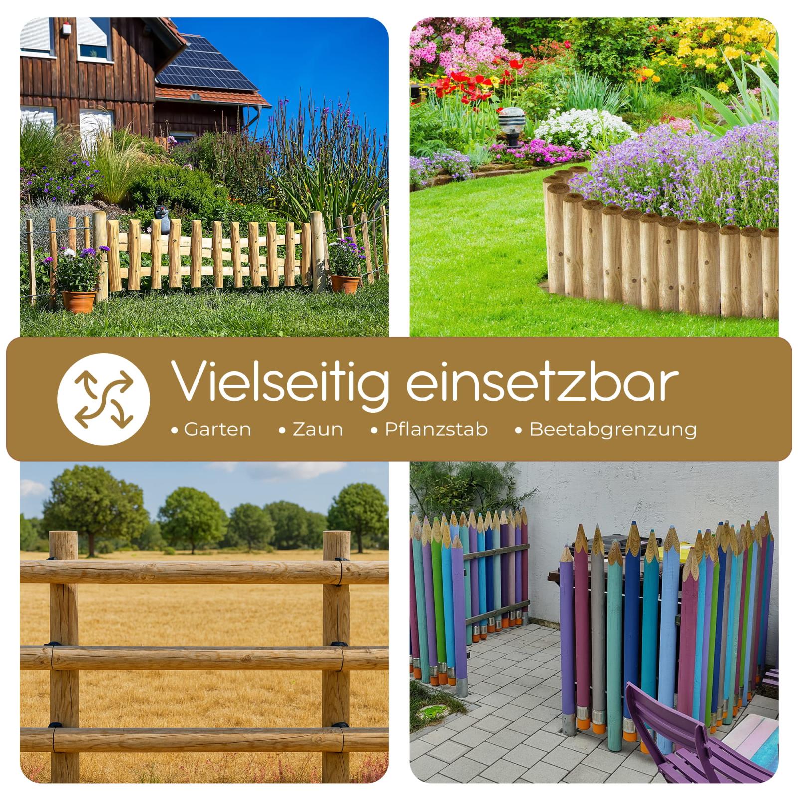 Unsere Palisaden aus Kiefernholz lassen sich vielseitig für die verschiedensten Zwecke im Garten verwenden. Erstellen Sie ganz einfach eine Umrandung für Beet und Sandkasten und erhalten Sie so eine saubere Rasenkante / Mähkante. Grenzen Sie verschiedene Gartenareale voneinander ab oder definieren Sie Laufwege ganz nach Ihren Vorstellungen.