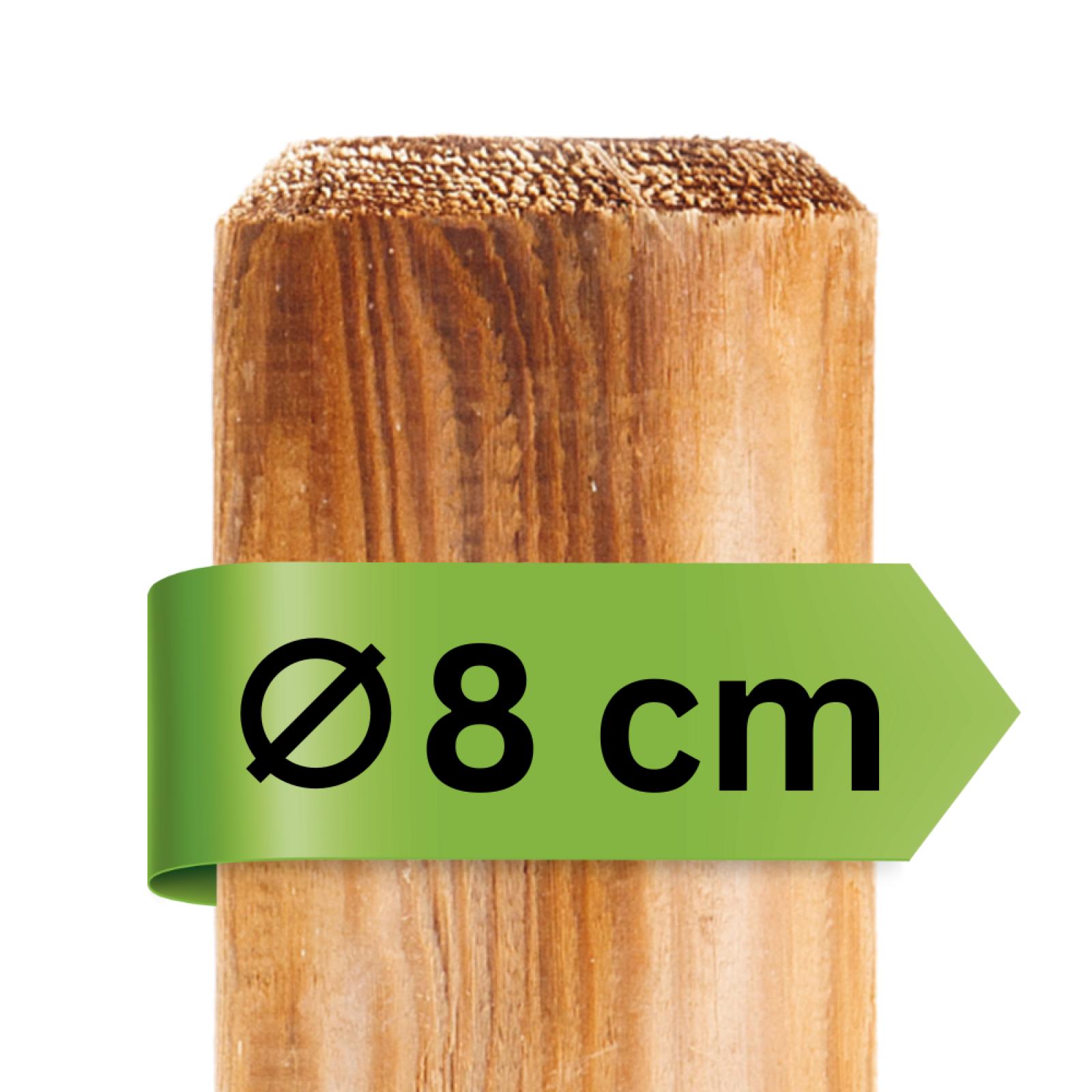 Die Kesseldruckimprägnierung macht unsere Pfosten widerstandsfähig gegen Witterung /Schädlinge und sorgt somit dafür, dass Sie lange Freude an unseren Mini-Palisaden und Baumpfählen haben. Durch die Imprägnierung weisen die Palisaden anfangs einen grünlichen Farbton auf - nach wenigen Wochen verblasst dieser und die natürliche gräulich-braune Holzfarbe kommt zum Vorschein. Die Palisaden sind angespitzt, sodass Sie diese ganz leicht in den Boden einschlagen können. Die Kopffase (ringsherum abgeschrägter Kopf) sorgt für eine schöne und splitterfreie Optik.
