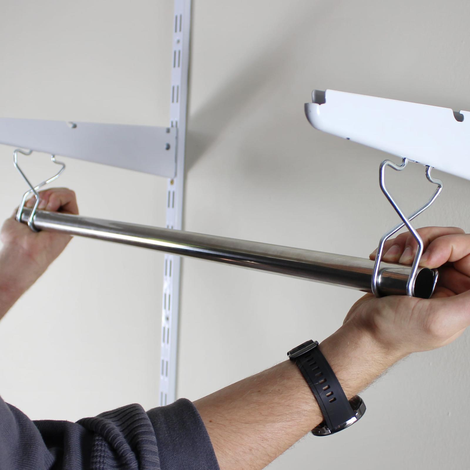 Die Kleiderstange wird mithilfe von BOOMET Kleiderstangenhaltern direkt am BOOMET