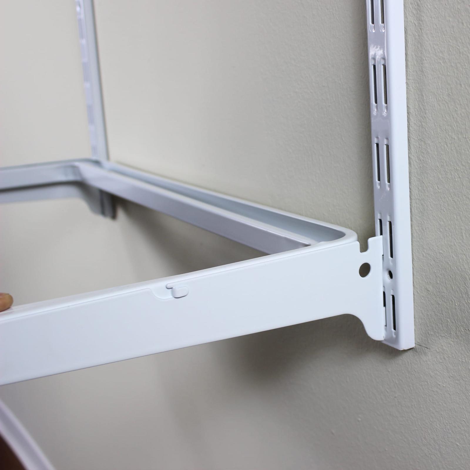 Das Korbgestell wird in das BOOMET Wandschienen-Kleiderschranksystem eingehängt