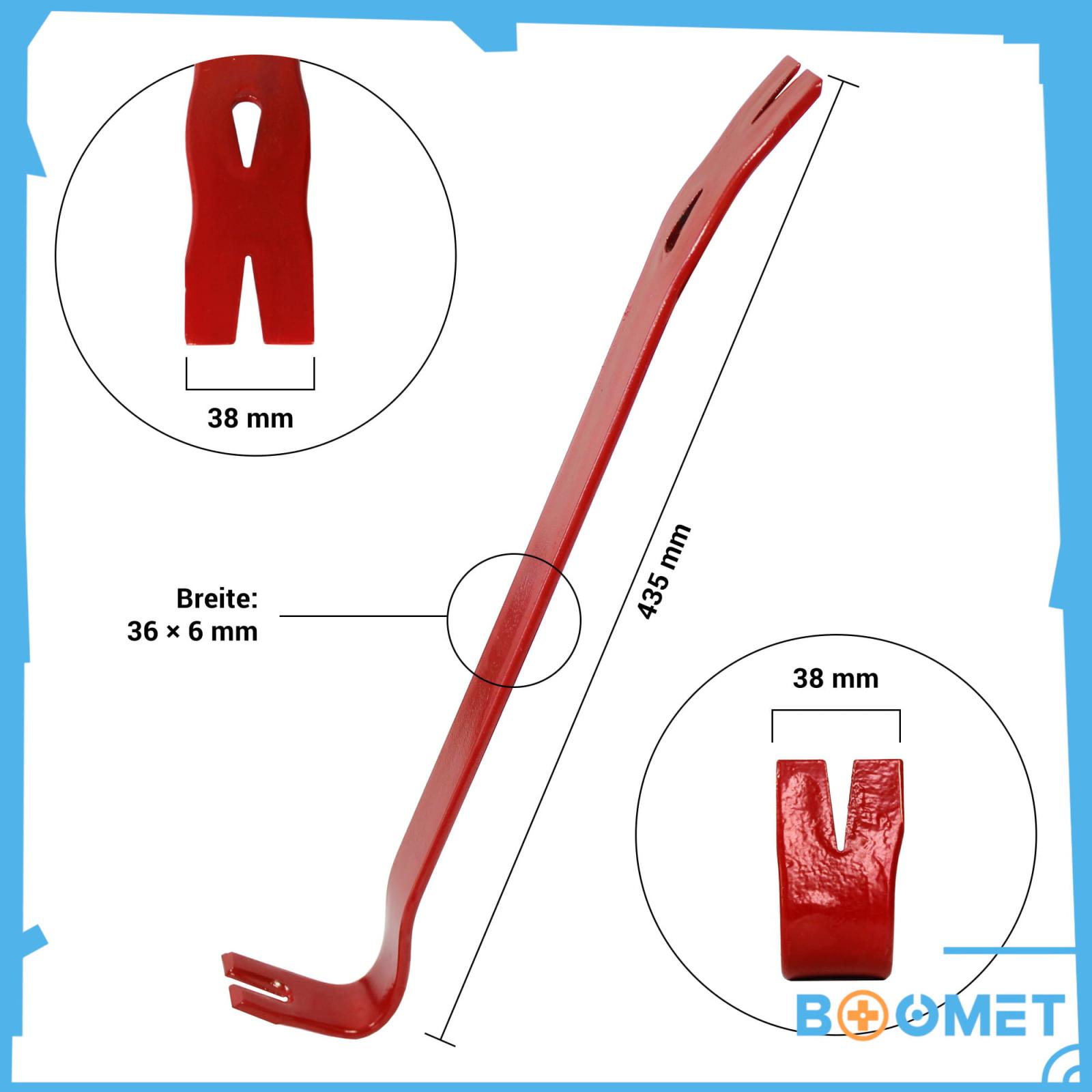 Das BOOMET Brecheisen ist ein robustes Werkzeug für vielfältige Hebel-, Zieh- und Aufbrucharbeiten. Hergestellt aus massivem Vollstahl eignet es sich ideal für den Einsatz in Werkstatt, Bau und Renovierung. Die gebogene Form des Kuhfußes sorgt für effektives Arbeiten beim Entfernen von Nägeln oder beim Auseinanderhebeln von Holzverbindungen.