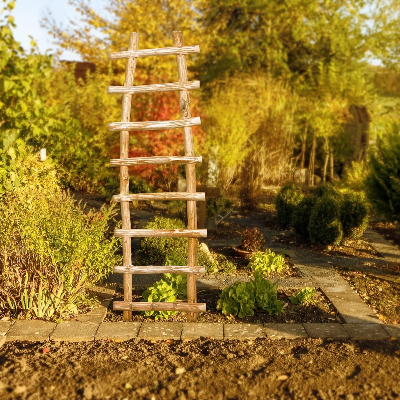 Unser Spalier aus unbehandeltem Naturholz ist die perfekte Grundlage für Ihre Rankpflanzen-Ideen. Nutzen Sie die Kletterhilfe und lassen Sie Rosenstauden, Efeu, Obstbüsche wie Brombeeren oder Himbeeren an ihr hochwachsen. Selbst Tomaten- oder Gurkenpflanzen lassen sich am Rankgitter aus Holz anbinden und gedeihen. Die Leiterrankhilfe ist eine echte Alternative zu Spalieren aus Kunststoff oder Metall und wird auch in Ihrem Garten ein großartiges Bild abgeben. Sie ist in vielen Größen erhältlich und kann beliebig erweitert werden.