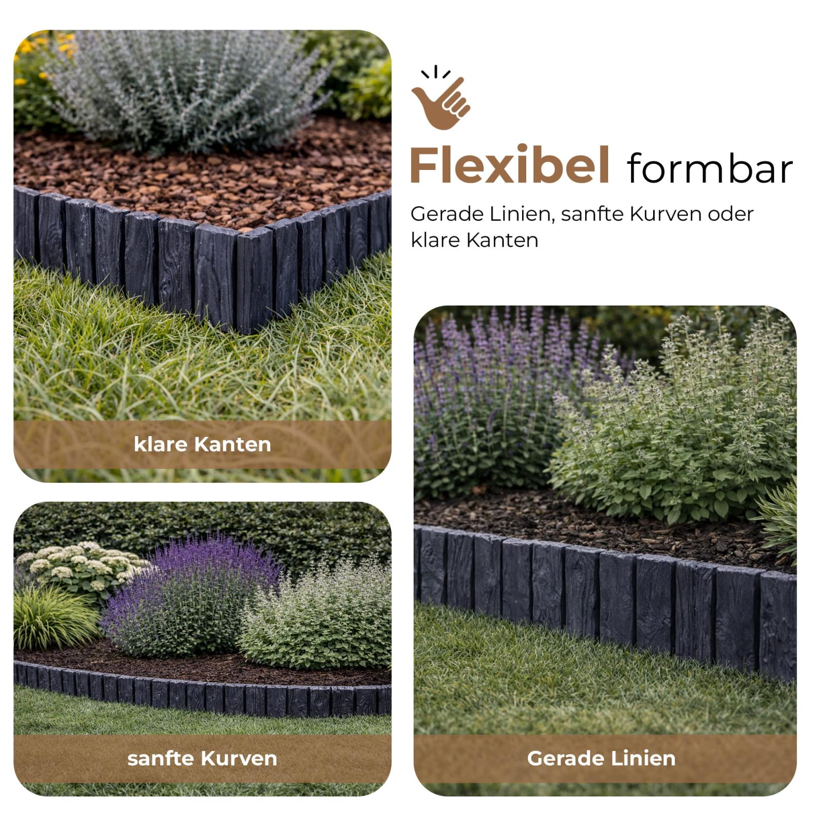 - Langlebiges Material: Hergestellt aus robustem Kunststoff, ist unsere Rasenkante witterungsbeständig, verrottungsfest und bietet eine langanhaltende Lösung für Ihre Gartenabgrenzung.