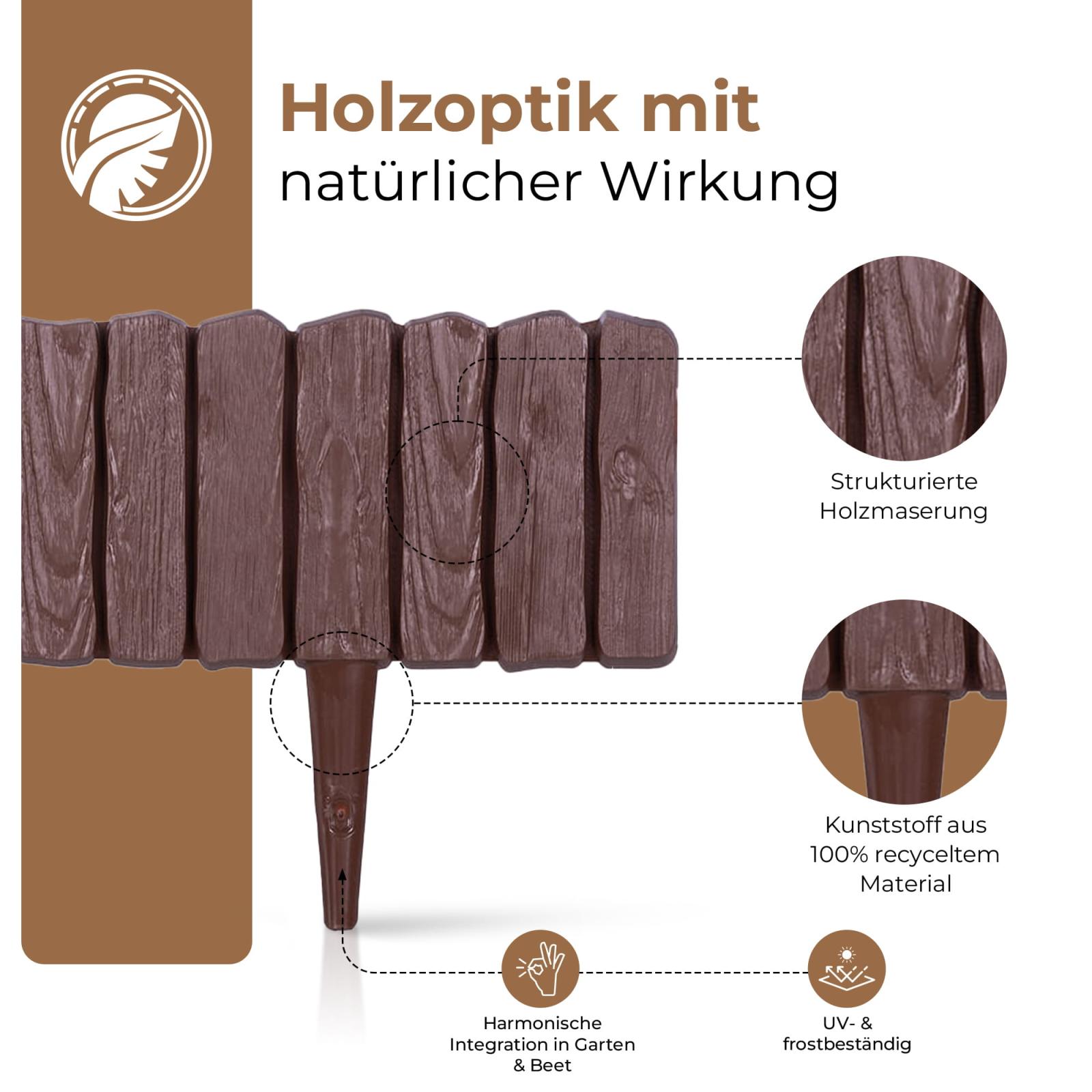 Verleihen Sie Ihrem Garten ein rustikales und naturnahes Ambiente mit unserer hochwertigen Beeteinfassungen in Holzoptik. Diese innovative Gartenlösung bietet nicht nur eine klare Abgrenzung zwischen Rasenflächen, Beeten und Wegen, sondern verleiht Ihrem Außenbereich auch eine warme und einladende Atmosphäre. Die Beetumrandung in Holzoptik ist die perfekte Wahl für Gartenliebhaber, die Wert auf eine harmonische und natürliche Gestaltung legen.