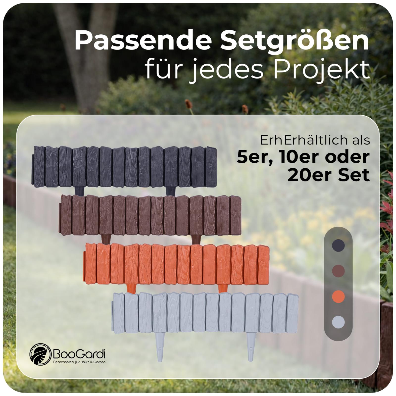 Verleihen Sie Ihrem Garten ein rustikales und naturnahes Ambiente mit unserer hochwertigen Beeteinfassungen in Holzoptik. Diese innovative Gartenlösung bietet nicht nur eine klare Abgrenzung zwischen Rasenflächen, Beeten und Wegen, sondern verleiht Ihrem Außenbereich auch eine warme und einladende Atmosphäre. Die Beetumrandung in Holzoptik ist die perfekte Wahl für Gartenliebhaber, die Wert auf eine harmonische und natürliche Gestaltung legen.
