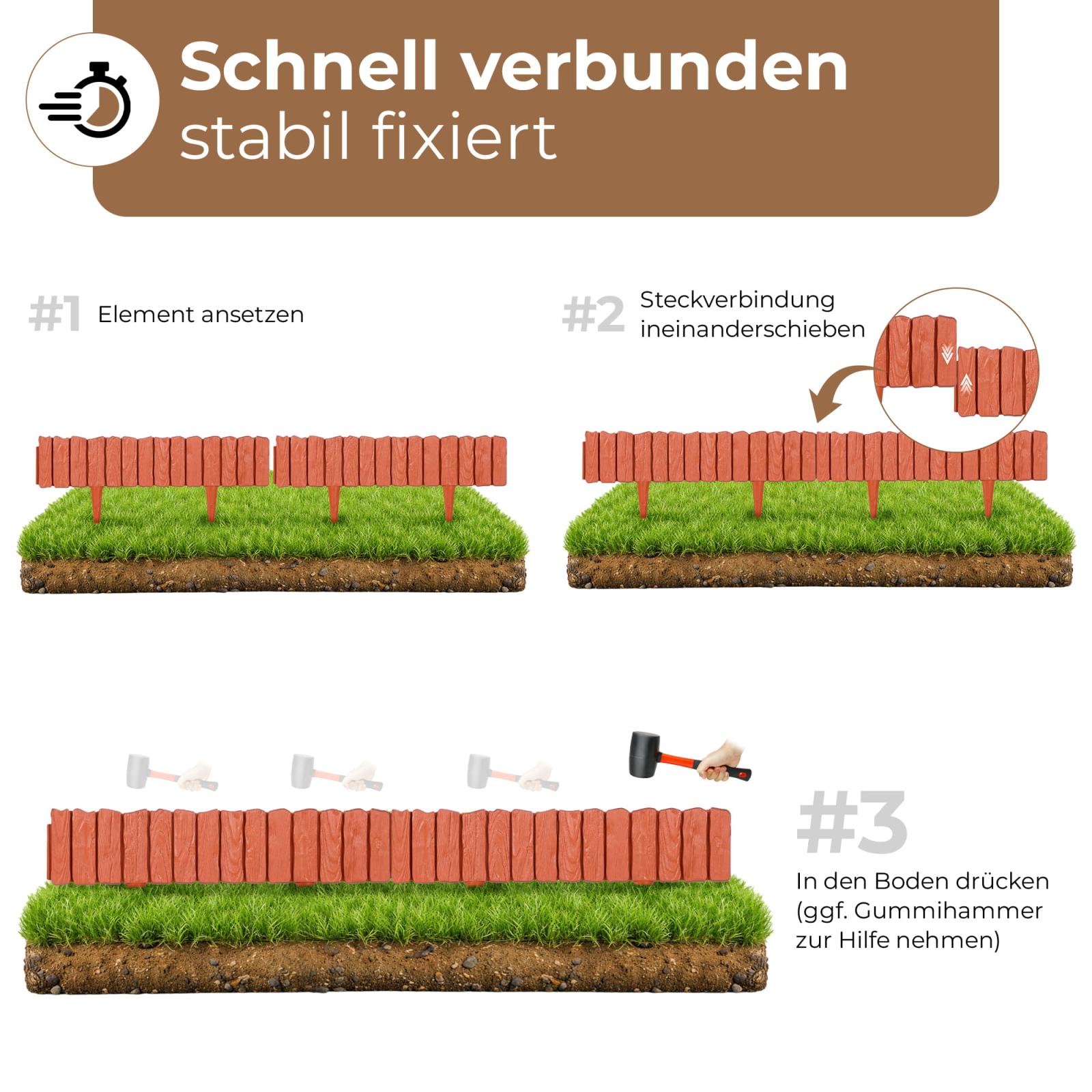 - Langlebiges Material: Hergestellt aus robustem Kunststoff, ist unsere Rasenkante witterungsbeständig, verrottungsfest und bietet eine langanhaltende Lösung für Ihre Gartenabgrenzung.