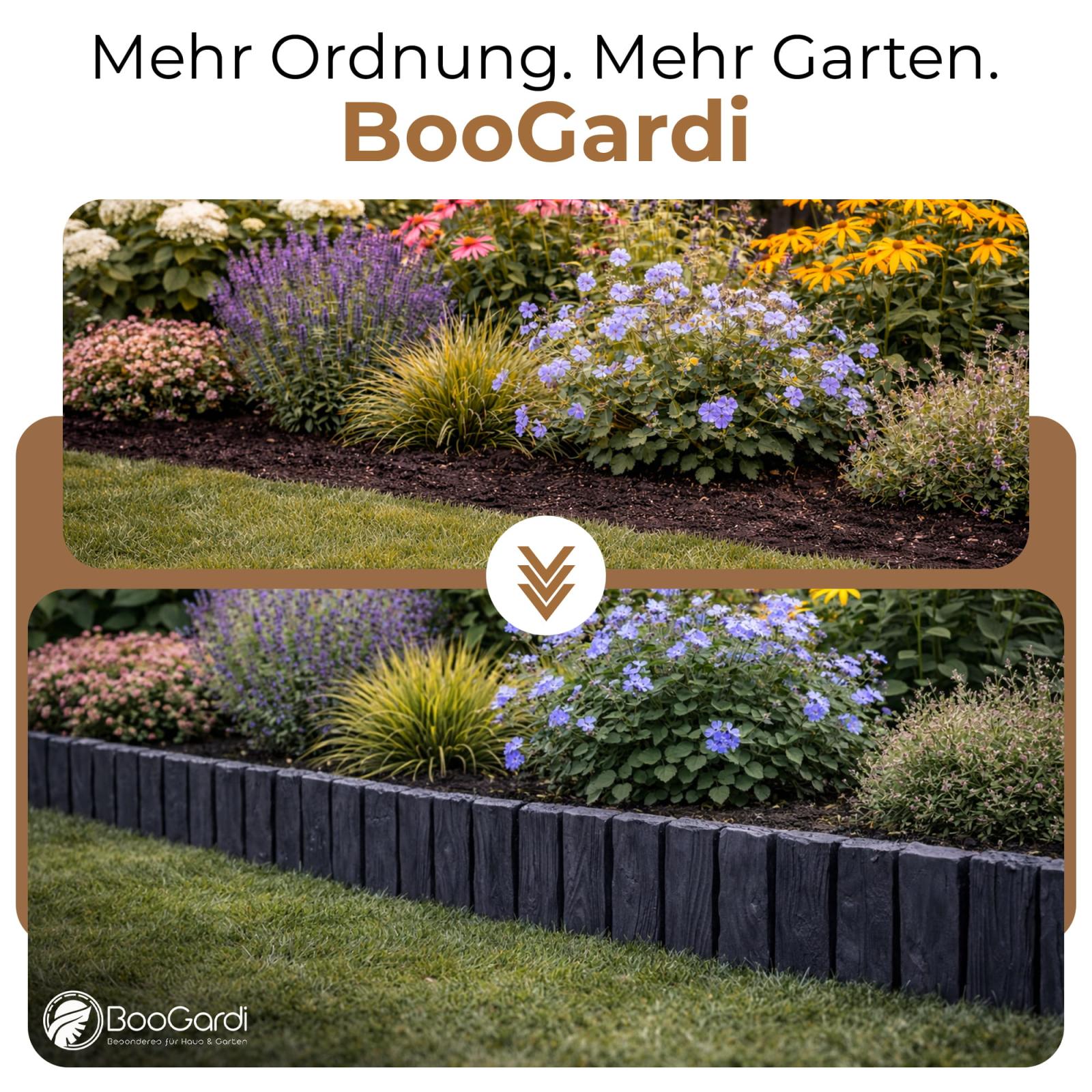 - Vielseitige Anwendung: Neben der Rasenbegrenzung eignet sich unsere Rasenkante auch als Abgrenzung für Blumenbeete, Wege oder als dekoratives Element für Vorgarten und Einfahrten.