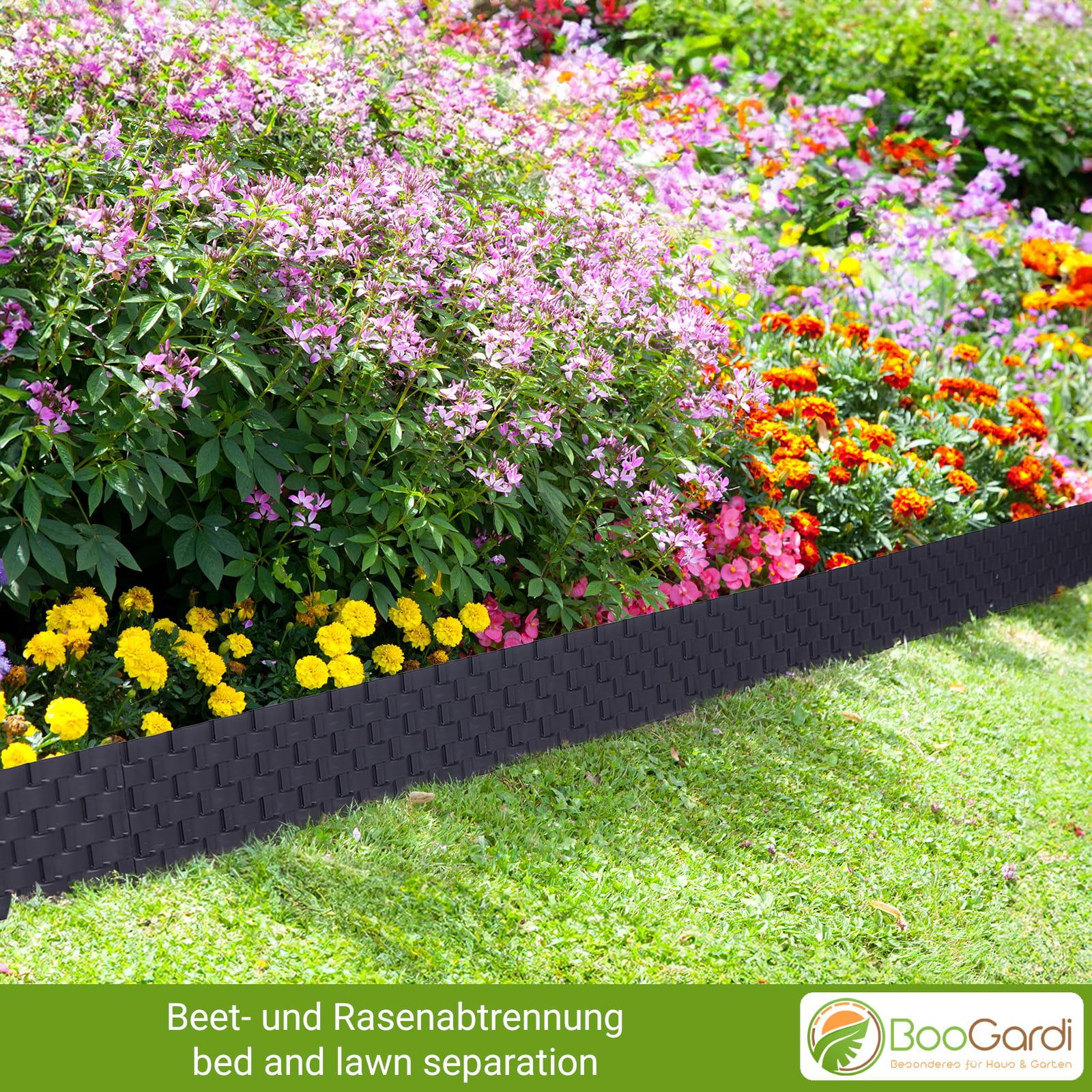Verleihen Sie Ihrem Garten eine elegante Note und setzen Sie klare Akzente mit unserer Beetbegrenzung in Rattanoptik. Diese innovative Gartenlösung verbindet Funktionalität mit ästhetischem Design und schafft so eine attraktive Abgrenzung für Blumenbeete, Rasenflächen und Wege. Die Beeteinfassung verleiht Ihrem Außenbereich nicht nur Struktur, sondern setzt auch stilvolle Highlights.