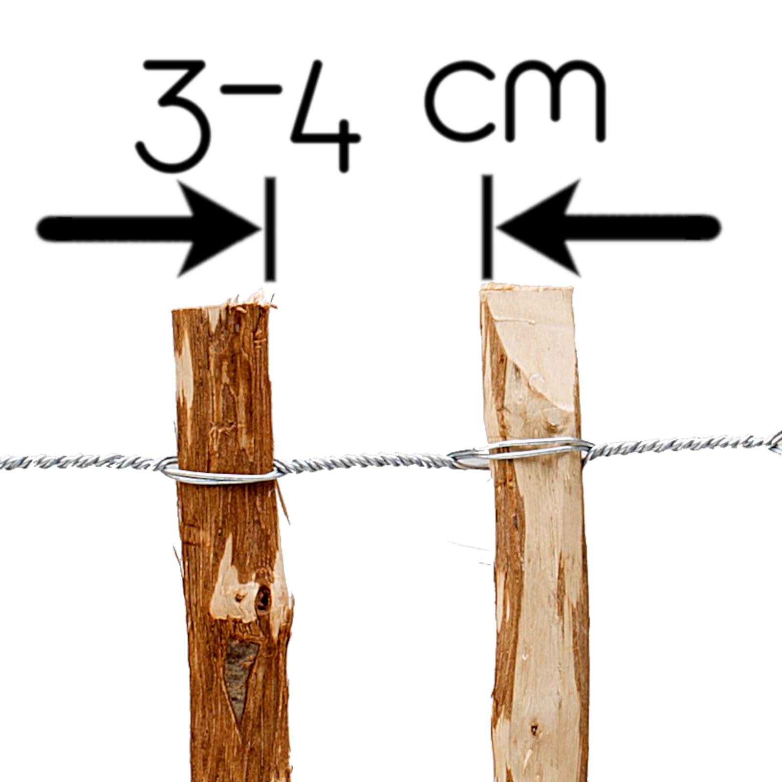 Die Spitzen der Holzlatten sind nach oben hin nicht angespitzt, was für ein Höchstmaß an Sicherheit und eine einladende Optik sorgt. Die Verspannung des Steckzauns besteht aus einem starren, verzinkten Drahtgeflecht, welches für die nötige Stabilität sorgt und eine optimale Formbarkeit ermöglicht. So können Sie ohne zusätzliche Fixierung auch kreisrunde, wellenförmige und eckige Abgrenzungen sehr unkompliziert realisieren. Das unbehandelte Haselnussholz besitzt seinen besonderen Charme und unterstreicht den natürlichen Charakter jedes Gartens.
