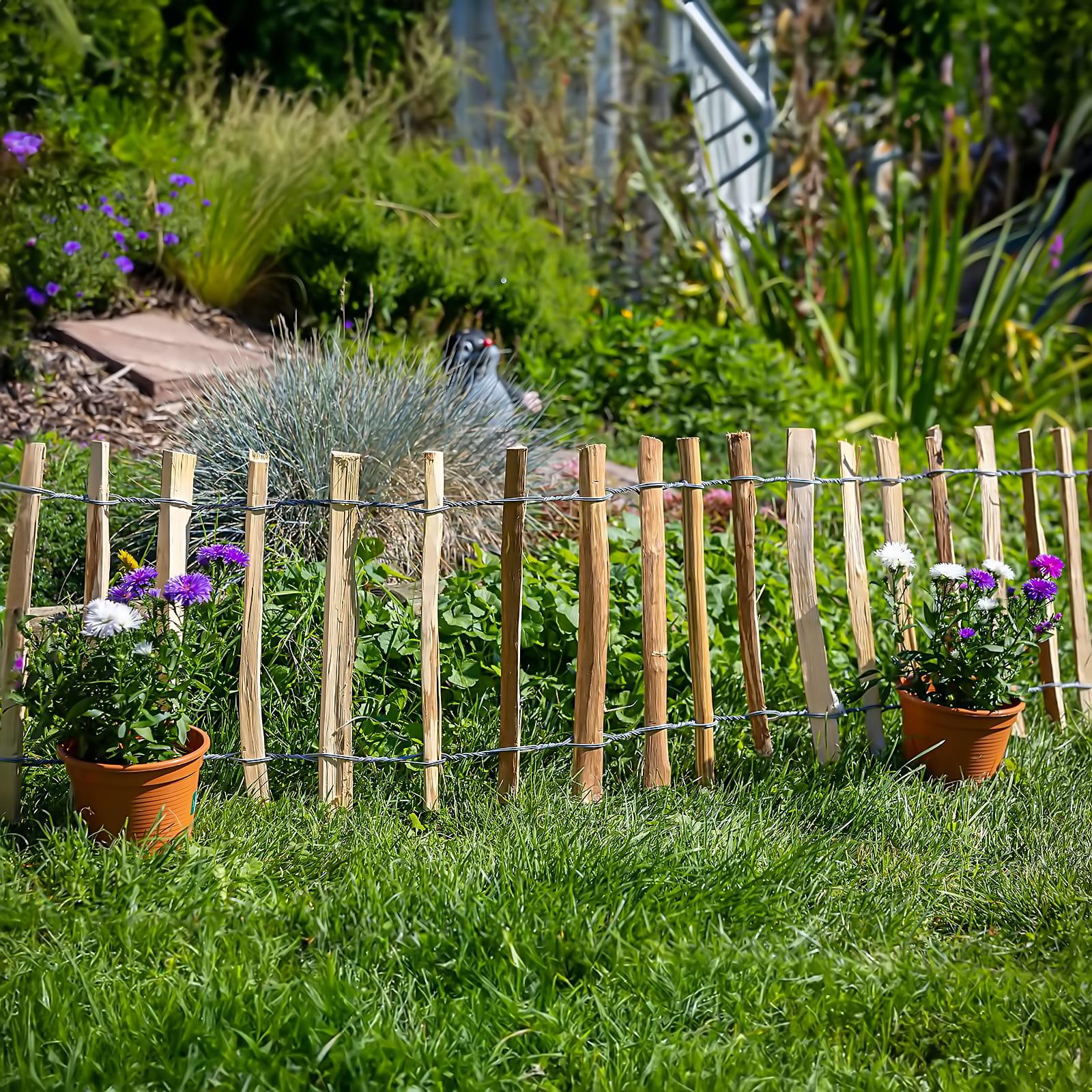 Laufwegen, Grundstücksgrenzen uvm. Keine Pflanzen können ihre feinen Äste durch den Zaun hindurchstrecken und sorgen für eine natürlich wirkende Ordnung im Garten. Durch die integrierten Pfosten kann diese Beeteinfassung sehr schnell und unkompliziert aufgebaut werden.