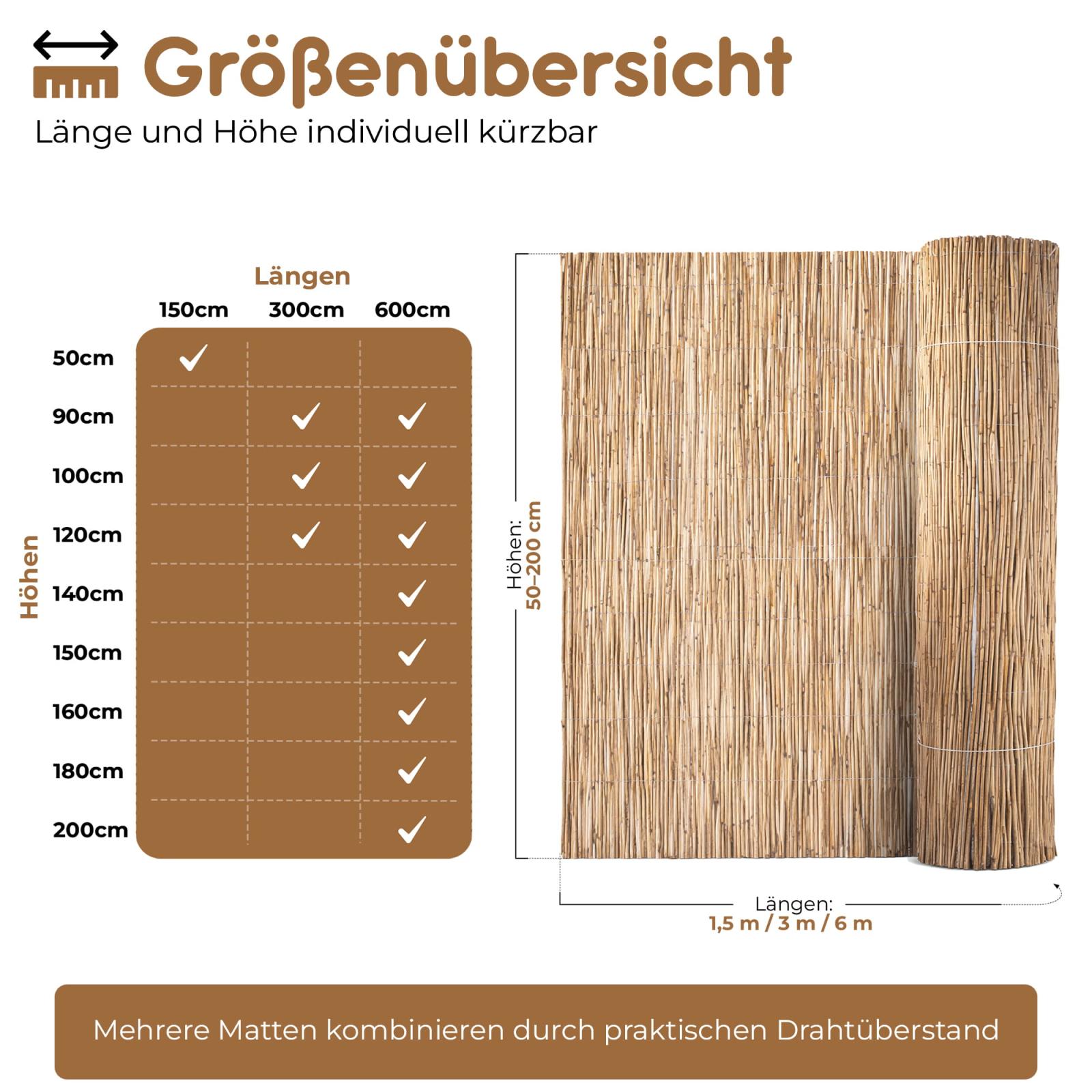 Unsere Schilfrohrmatte ist ein individuelles Naturprodukt und in verschiedenen Größen erhältlich