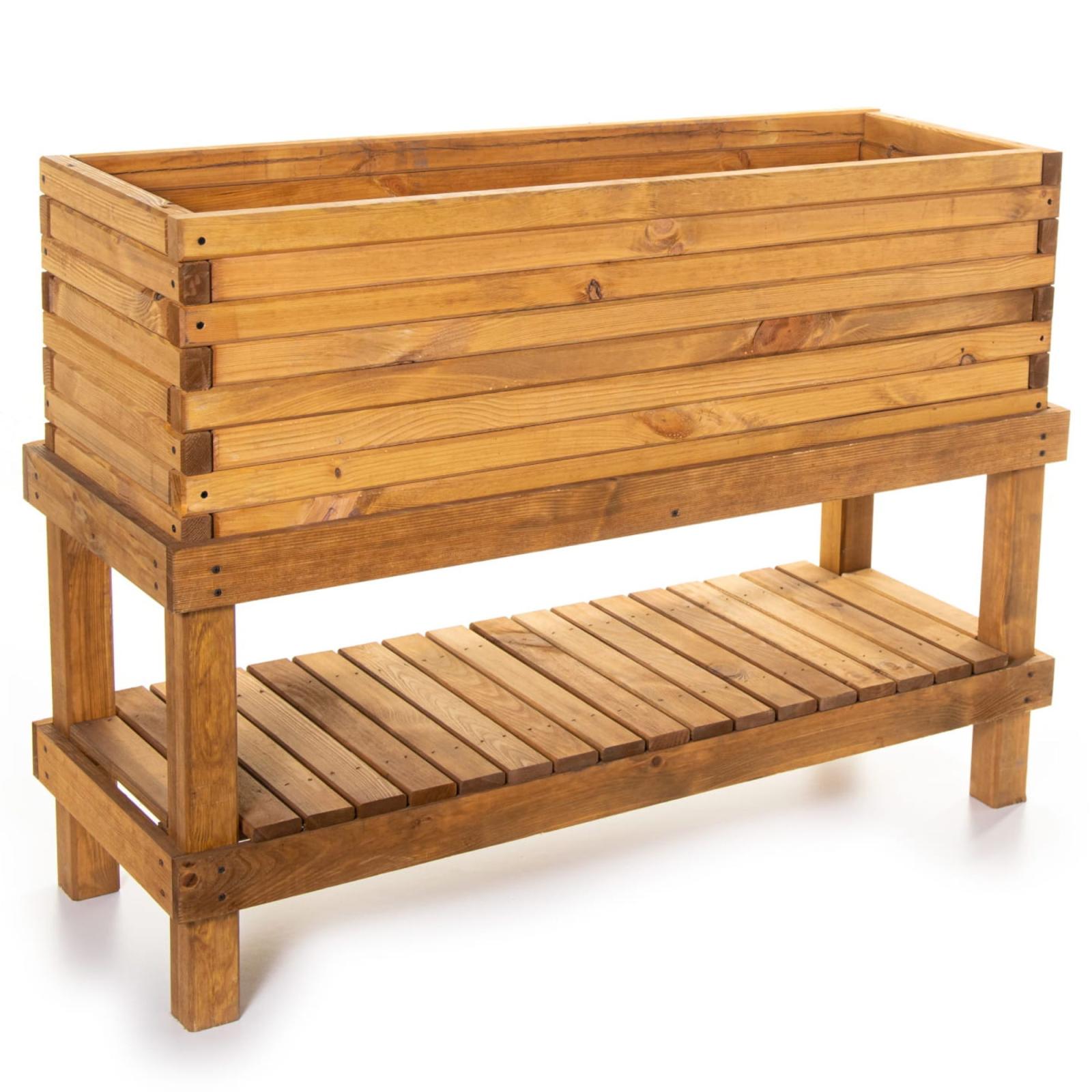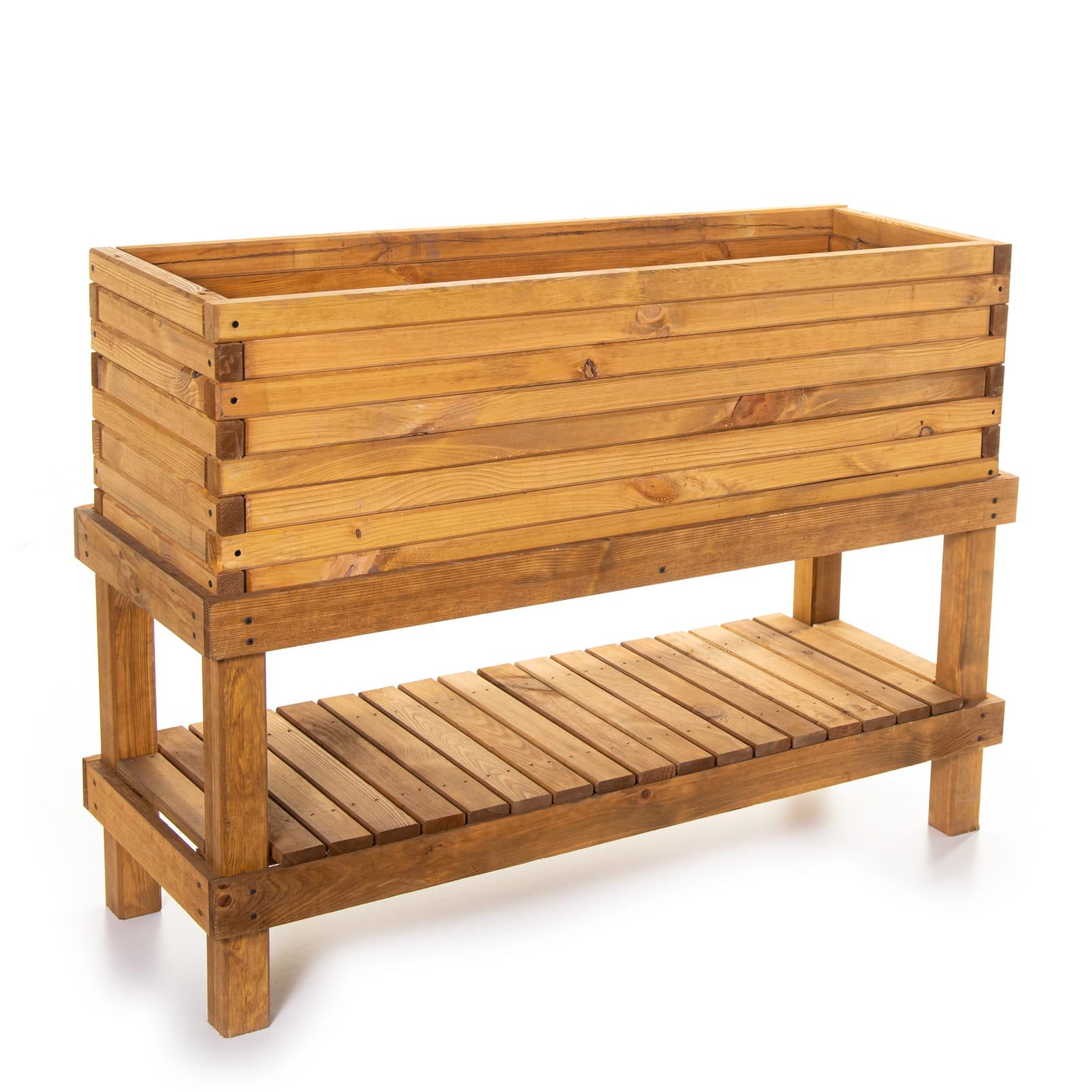 Das Untergestell aus imprägnierten Kiefernholz ist die solideste Erweiterung um Ihren Pflanzkasten in eine bessere Arbeitshöhe zubekommen und so das Einpflanzen zu erleichtern. Mit diesem Unterbau sind Rücken- und Knieschmerzen bald kein Thema mehr.