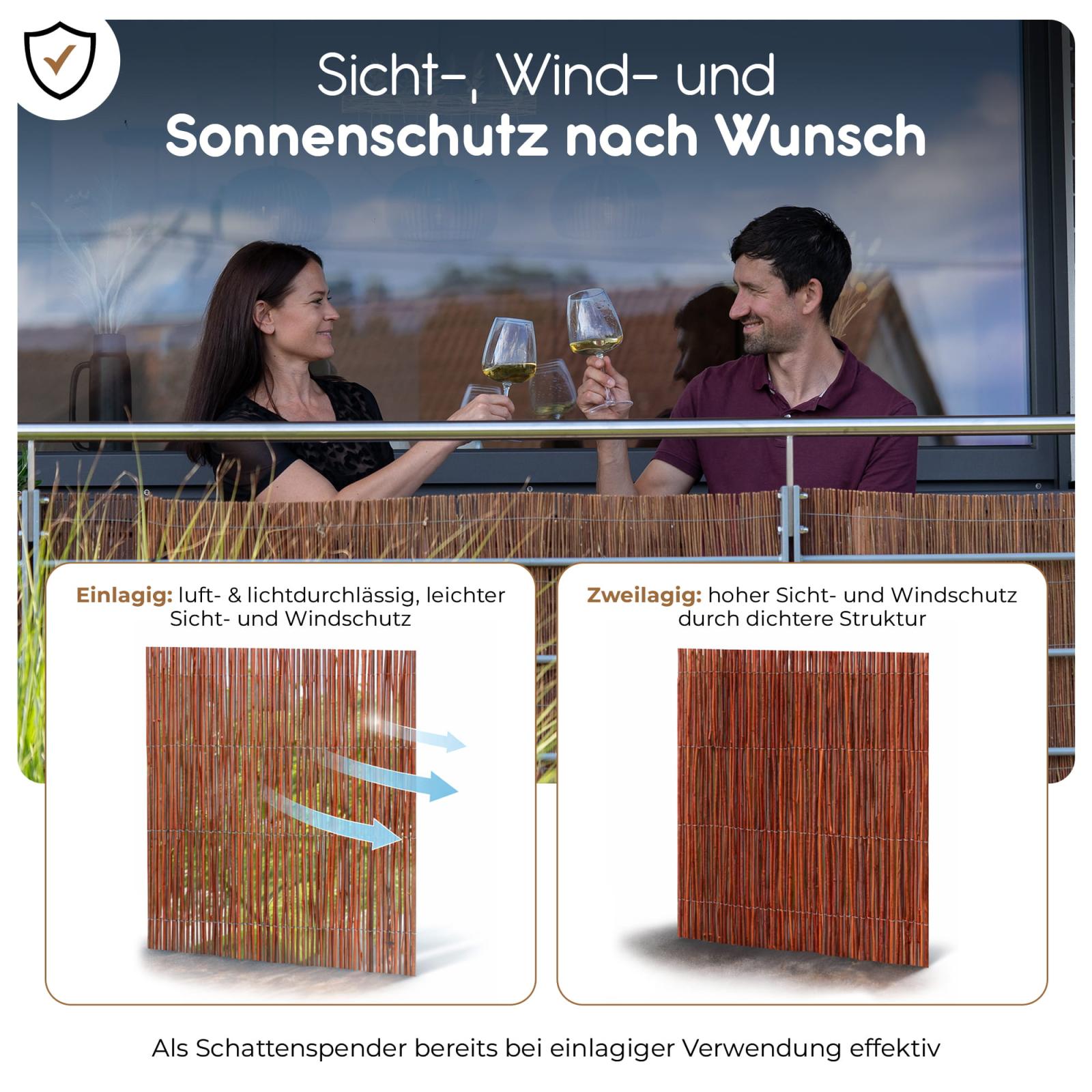 Qualitäts-Sichtschutzmatte von BooGardi - Verwenden Sie unsere Weidenmatte als Wind- und Sichtschutz für Garten, Balkon oder Terrasse.