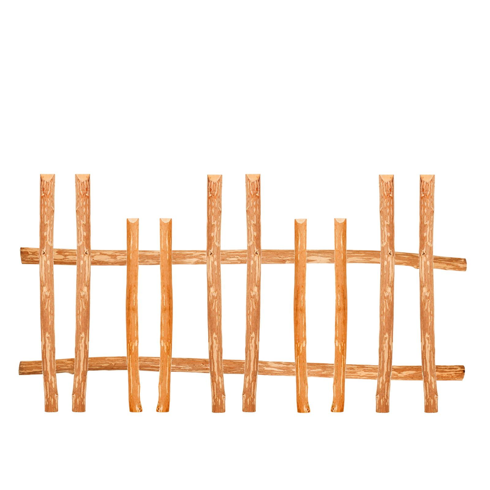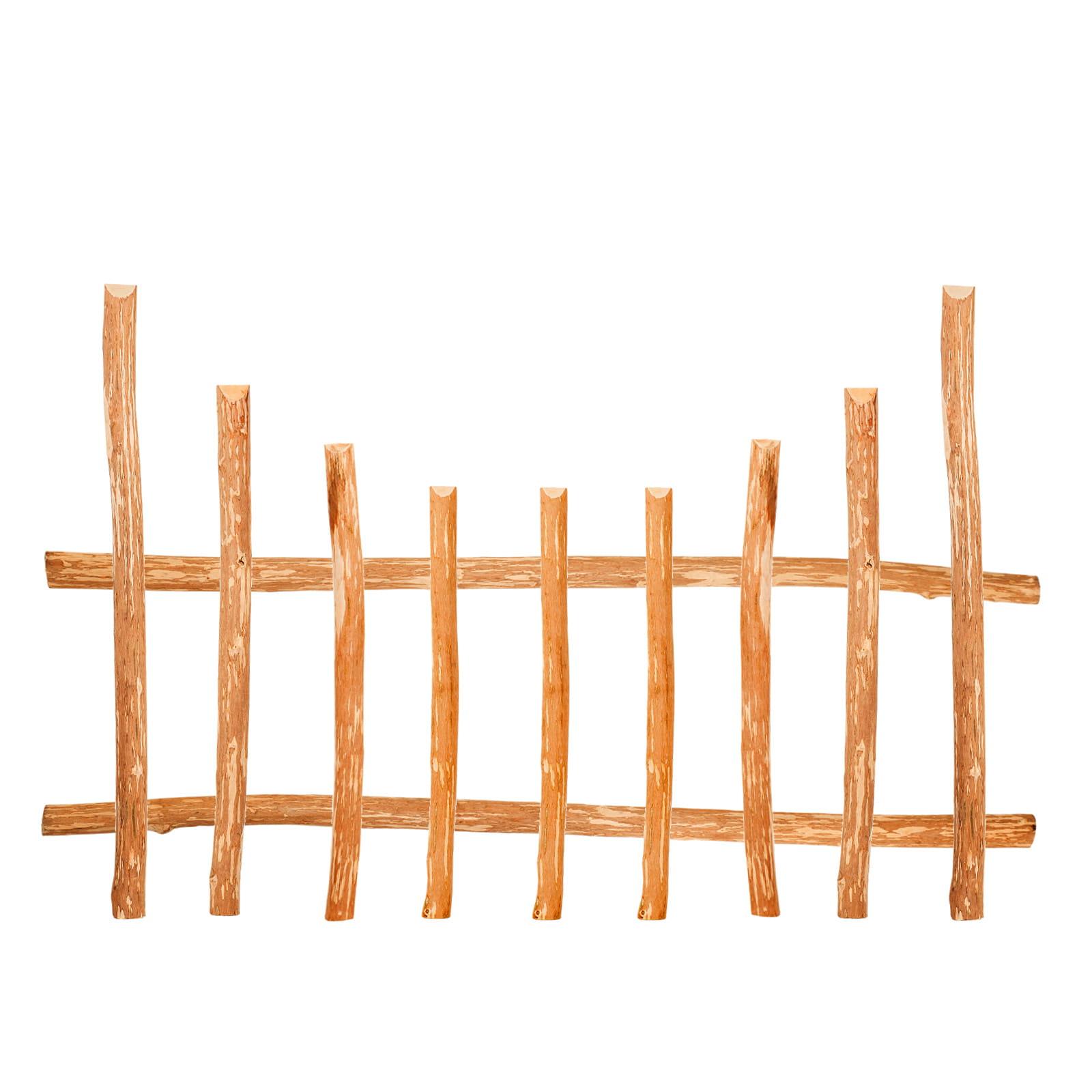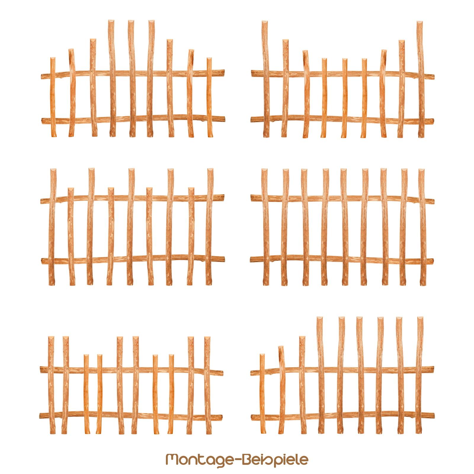 Die Spitzen der Holzlatten sind nach oben hin angeschrägt, was für ein Höchstmaß an Sicherheit und eine einladende Optik sorgt. Das unbehandelte Haselnussholz unterstreicht mit seinem besonderen Charme den natürlichen Charakter jedes Gartens. Die Montage ist kinderleicht.