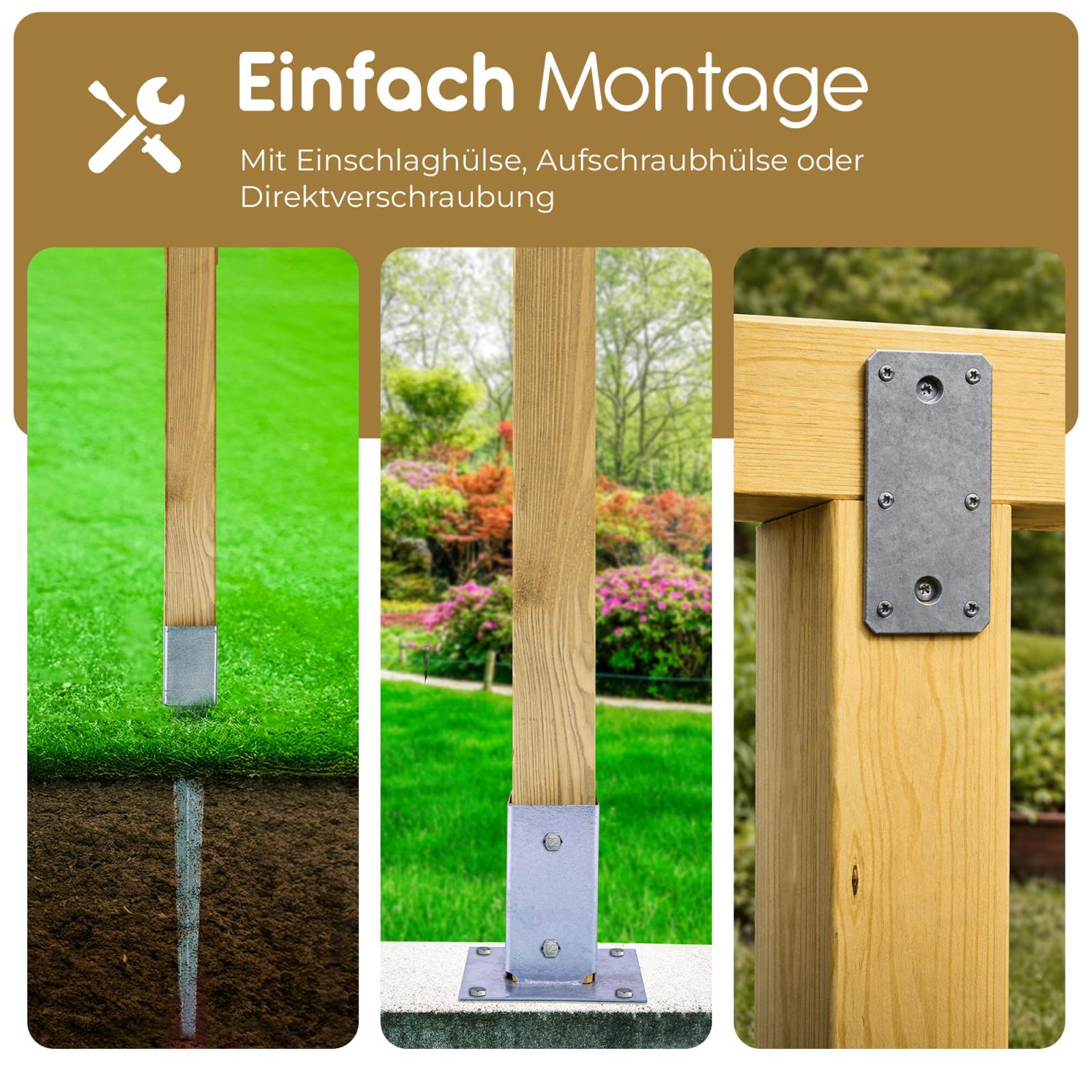 Unsere Zaunpfosten eigenen sich perfekt zum eigenständigen Errichten eines Gartenzaunes. Sowohl fertige Zaunelemente als auch Rollzäune, Staketenzäune und Lattenzäune lassen sich mit diesen Pfosten wunderbar aufbauen.