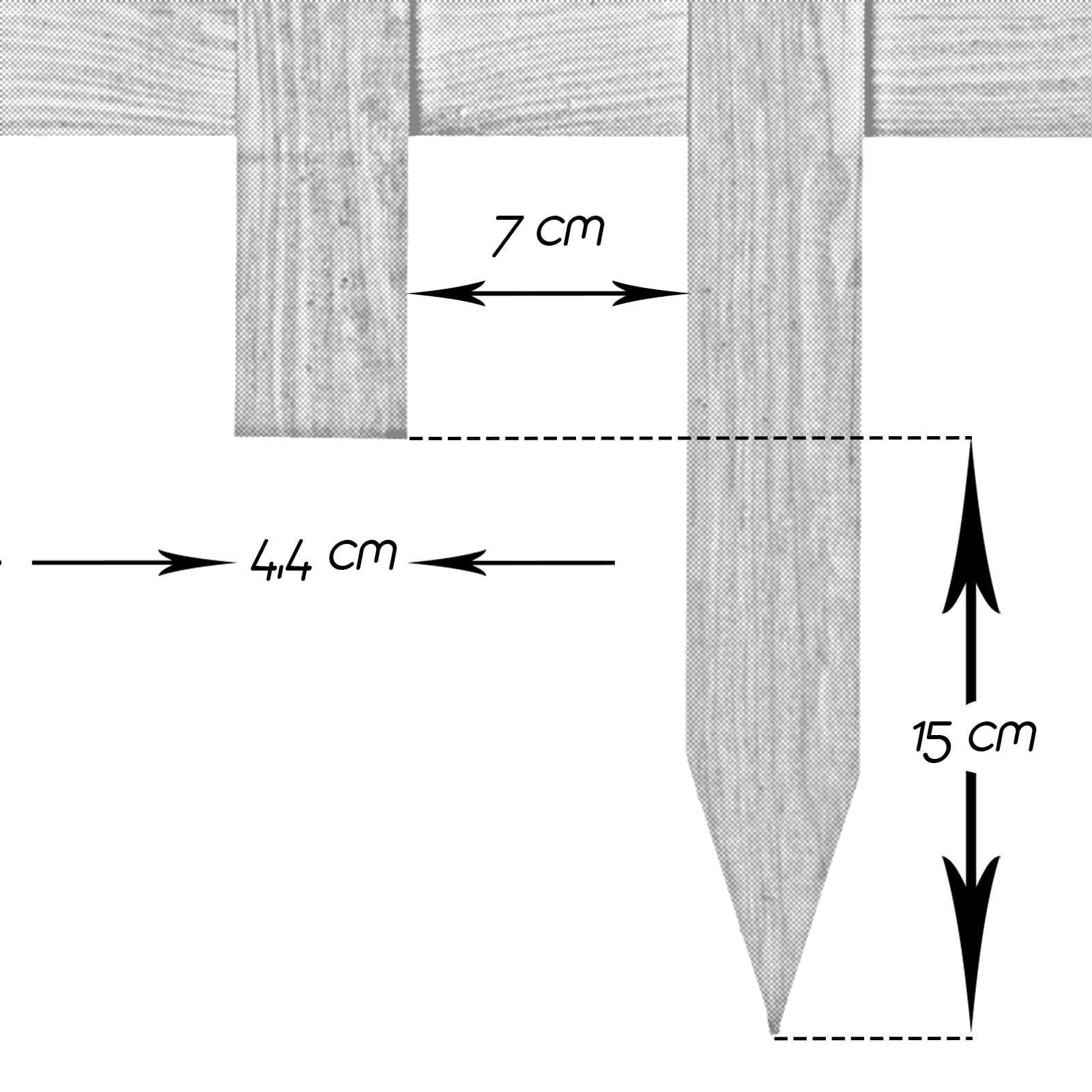 Da unsere Beetzäune bereits vormontiert sind, müssen Sie diese nur in den Boden bringen. Die einzelnen Elemente lassen sich wunderbar durch Ihre versetzen Latten aneinander reihen und geben so ein einheitliches schönes Gesamtbild ab.
