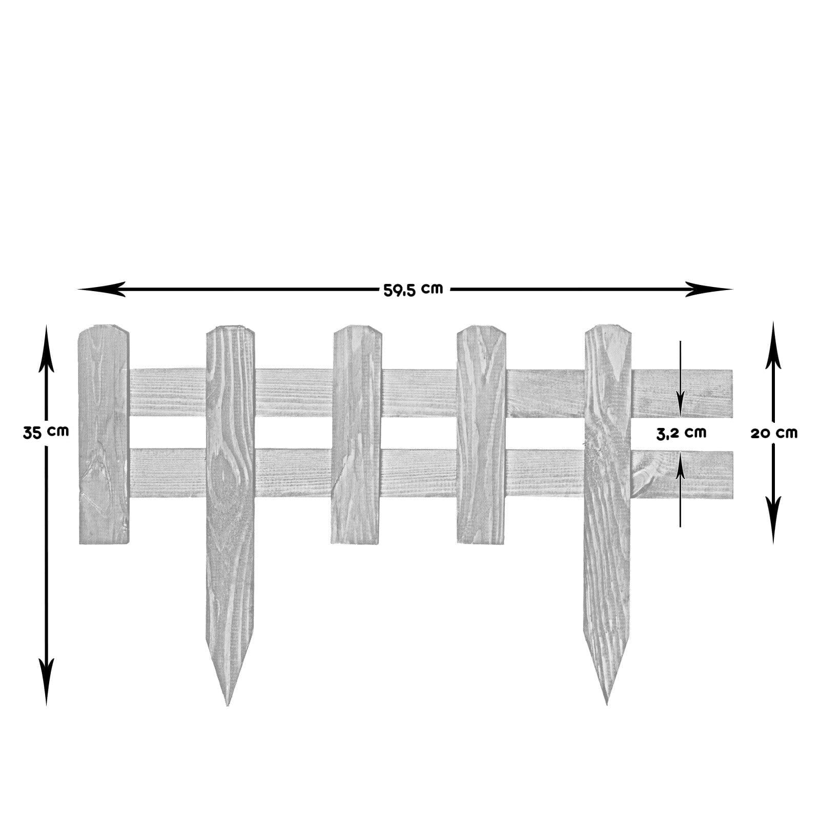 Unsere Beetzäune aus Holz sind eine ansprechende Idee um Ihrem Garten einen neuen Anstrich zu verpassen. Die Steckzäune sorgen für eine optische Trennung der verschiedenen Bereiche und damit für eine klare Struktur in Ihrer Gartenanlage. Sie können Ihre Blumenbeete einzäunen, den Rasen abgrenzen oder Bäume rechteckig einfassen. Die Beeteinfassungen zum Stecken bieten Ihnen vielerlei Verwendungsmöglichkeiten. Selbst um kleine Tiere wie Schildkröten oder Kaninchen im Sommer an der frischen Luft zu halten, können sie verwendet werden. Natürlich können Sie auch Ihr Obst-und Gemüse vor Vögeln schützen, indem Sie ein entsprechendes Netz über die Zäune spannen. Mit den Mini-Zäunen lassen sich auch schöne farbliche Kontraste erschaffen.
