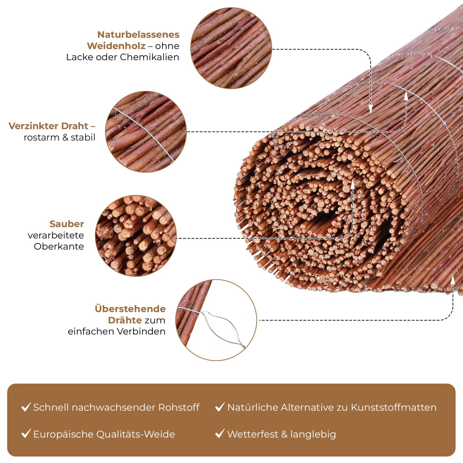 Qualitäts-Sichtschutzmatte von BooGardi - Verwenden Sie unsere Weidenmatte als Wind- und Sichtschutz für Garten, Balkon oder Terrasse.