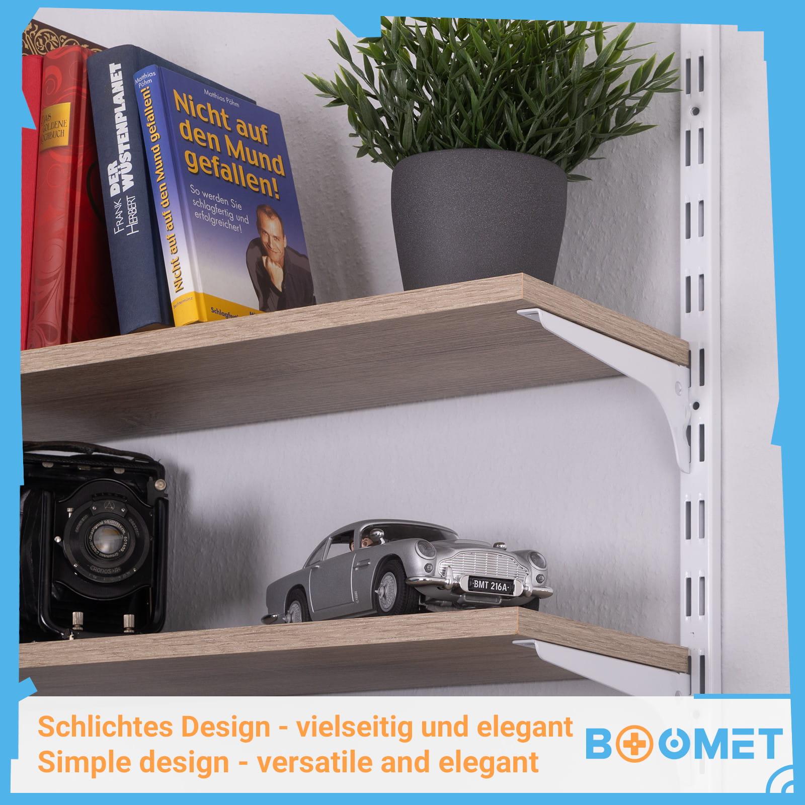 Sie wollen in Ihrem zu Hause Stauraum schaffen? Wie wäre es mit einem Regal aus Wandschienen? Unsere Regalhalter sind die perfekte Ergänzung dazu und lassen sich kinderleicht in Regalschienen integrieren umso mehr Platz für neues im Haus zu schaffen. Die Wandregal Halterungen sind sehr einfach gehalten und bestens geeignet für unterschiedliche Regale in Küche, Wohnzimmer, Vorratsräume, Keller, Dachboden, Waschraum, Badezimmer, Garderoben und sogar im Büro. Wandregale selber bauen ist mit diesen Regalhaltern keine Schwierigkeit mehr und lässt sich mit den passenden Regalschienen einfach umsetzen. Die Winkelträger lassen Ihnen mehr Spielraum um im Bereich Wohnen, Gestalten und Dekorieren.
